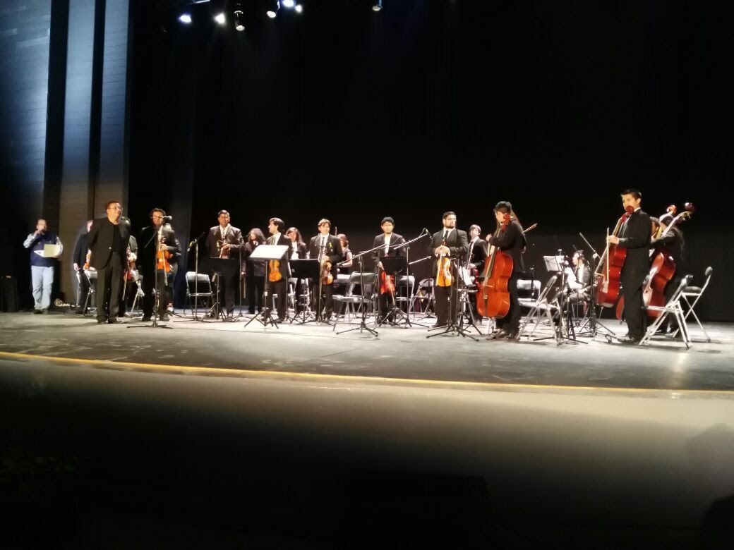 Con temas como “Primer movimiento de la serenata nocturna” de Mozart, “La noche” de Manuel M. Ponce, “Cavatina” de Stanley Myers, entre algunas piezas más, la orquesta de cámara de la escuela de Artes Escénicas de la Universidad Autónoma del Estado de México (UAEMéx) cautivó al auditorio del Teatro Quimera.Horacio Rico, quien es director musical de la orquesta y compositor, egresado de la Universidad Nacional Autónoma de México presentó uno a uno los temas que dirigió. Ha tenido presentaciones en varios países como Viena y próximamente en Chile y Berlín.