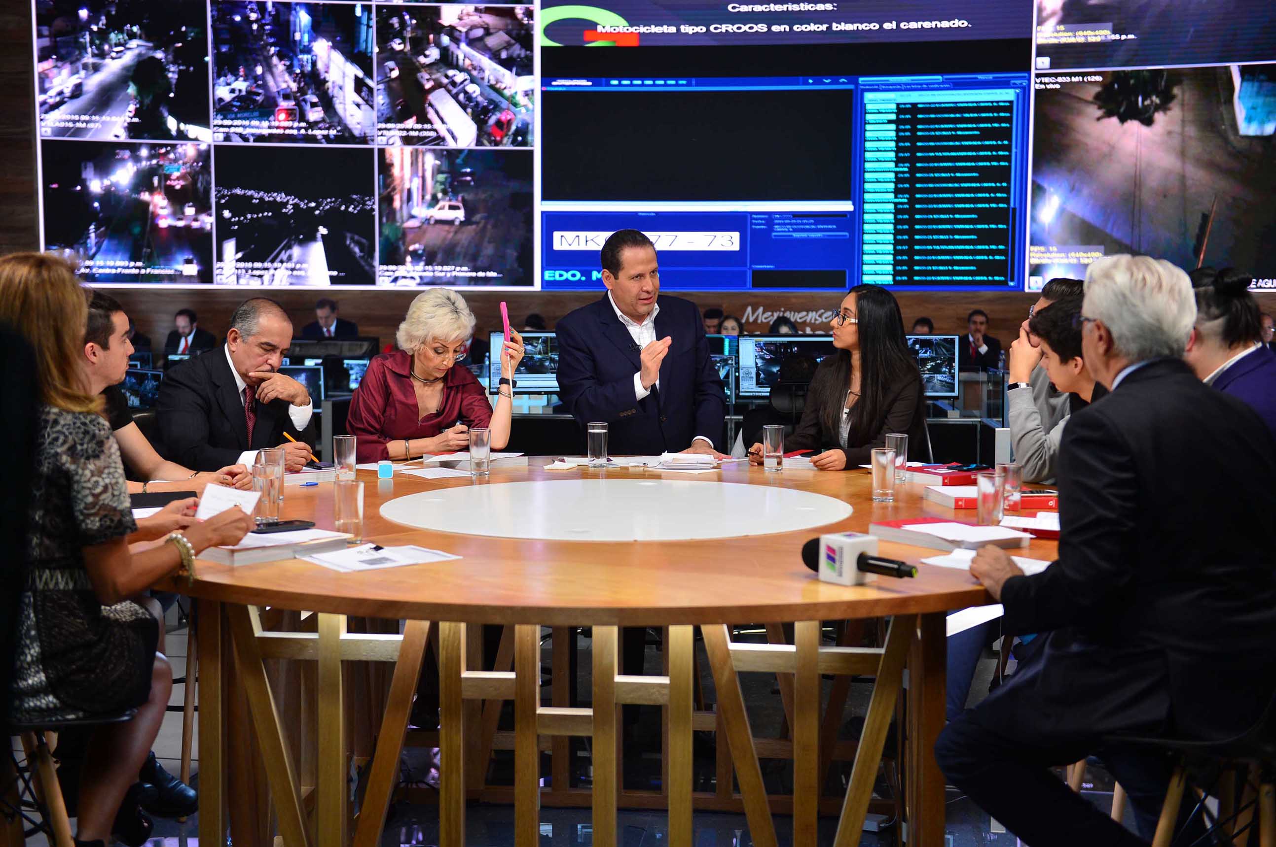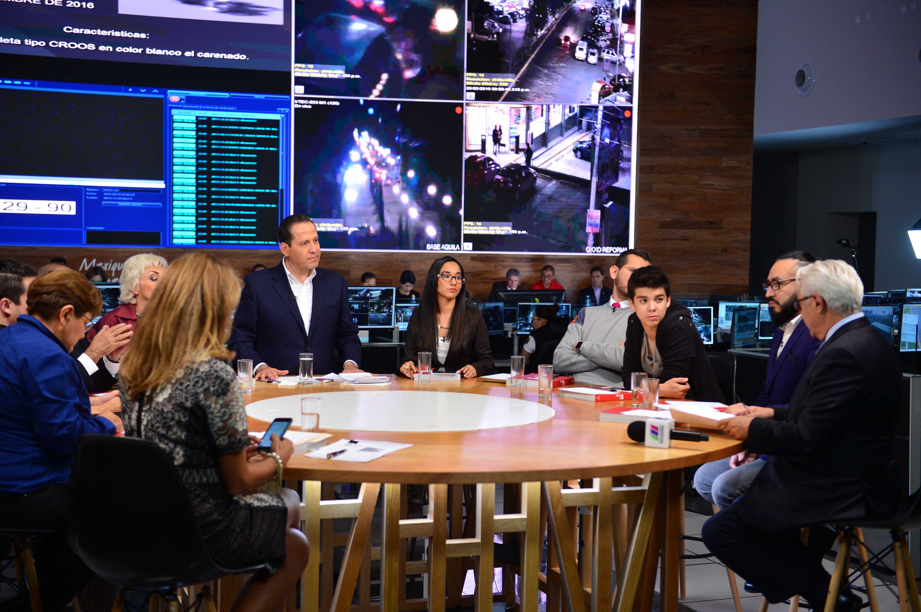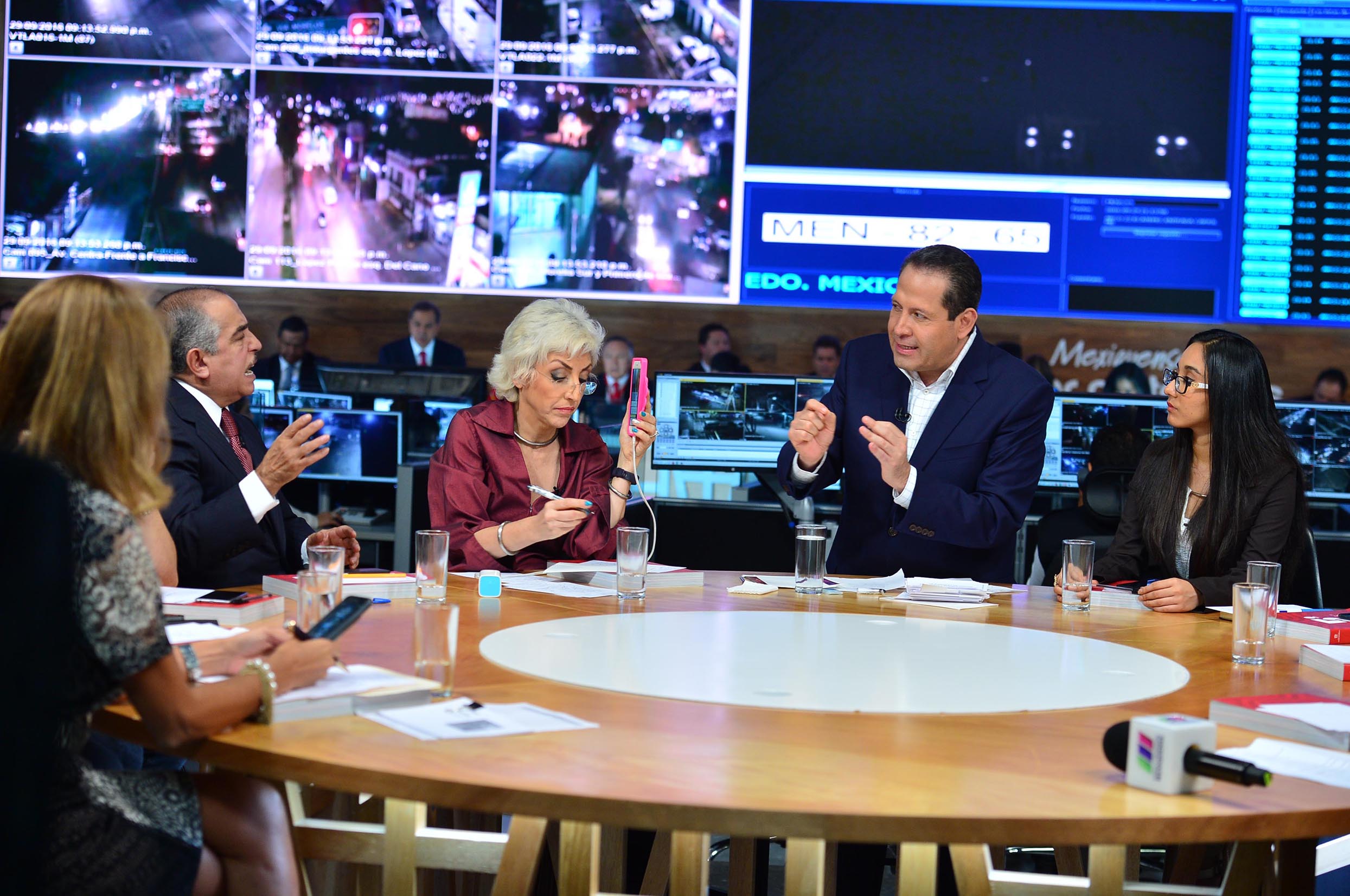 Sin guión de por medio, el diálogo se realizó en las instalaciones del Centro de Monitoreo de Videovigilancia para el Valle de México, instalado en el municipio de Ecatepec, en donde además todos los integrantes de su gabinete participaron respondiendo las preguntas.