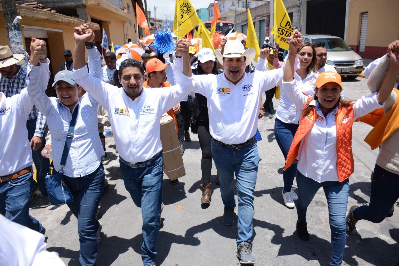 Los colores azul, blanco, naranja, amarillo y naranja se mezclan por las calles, las banderas se agitan en apoyo a Alejandro, seguro está que la ciudadanía lo llevará de nuevo al congreso local.