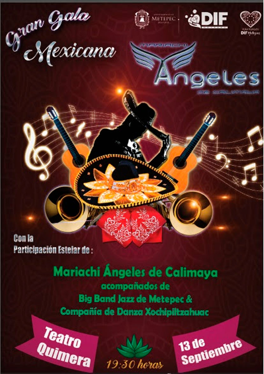 - Se ofrecerá al público un concierto de fusión entre Mariachi, la Big Band Jazz de Metepec y danza folclórica contemporánea.