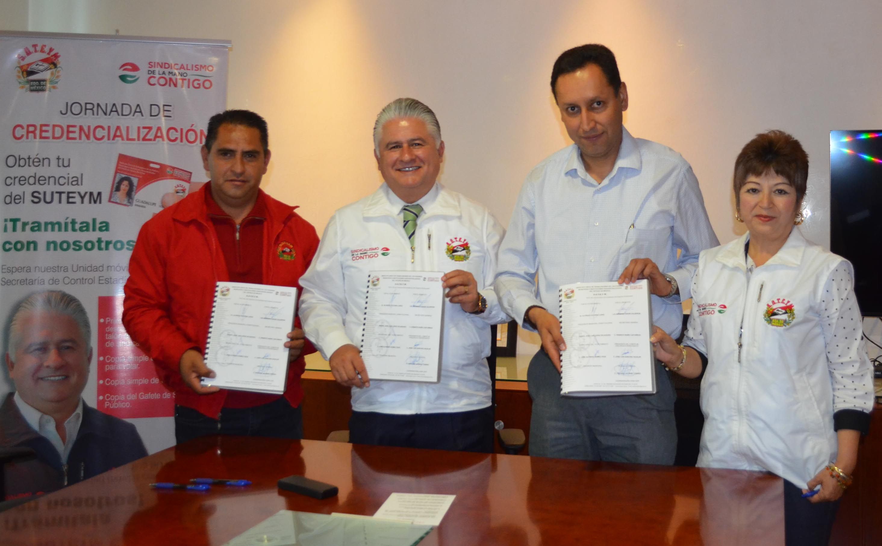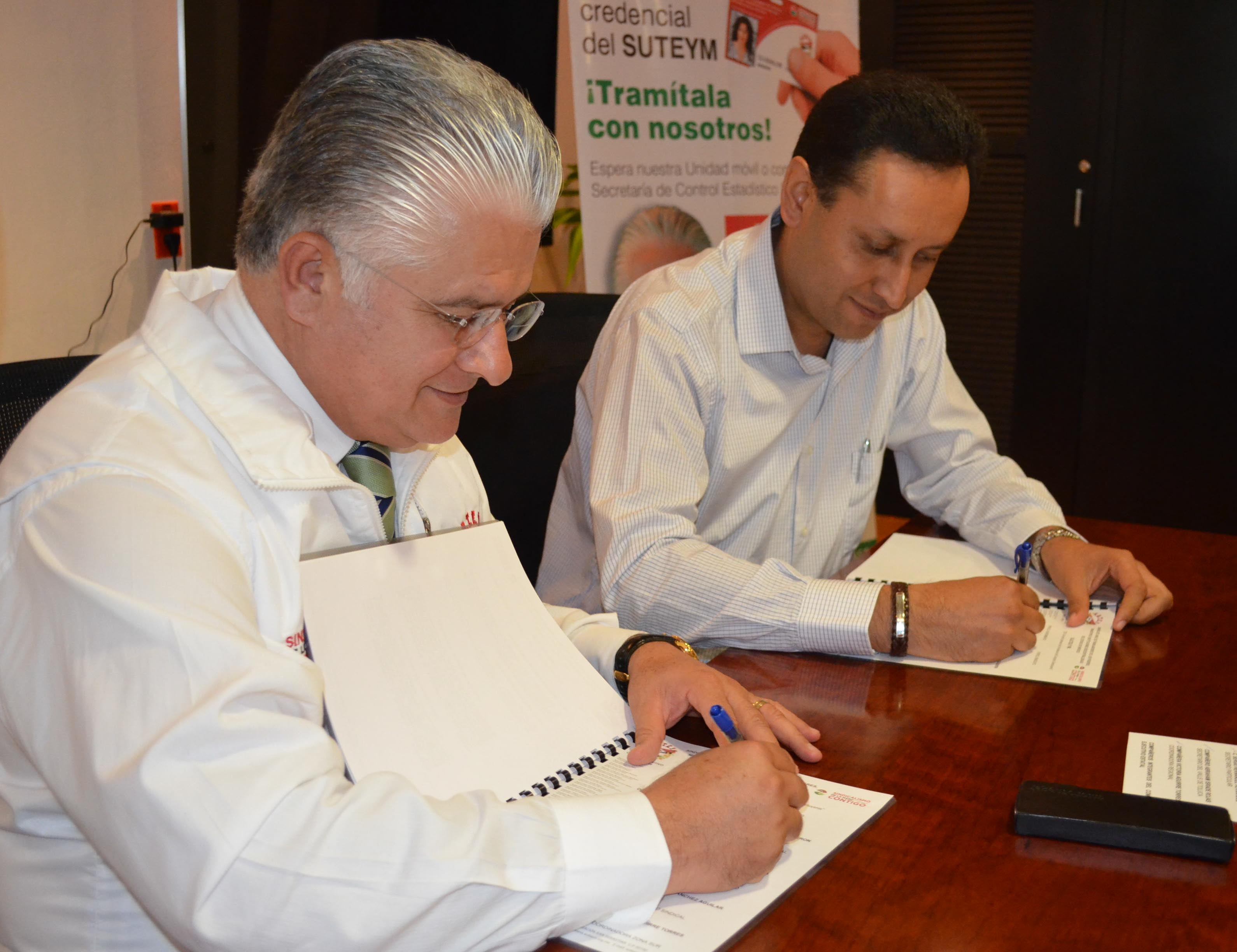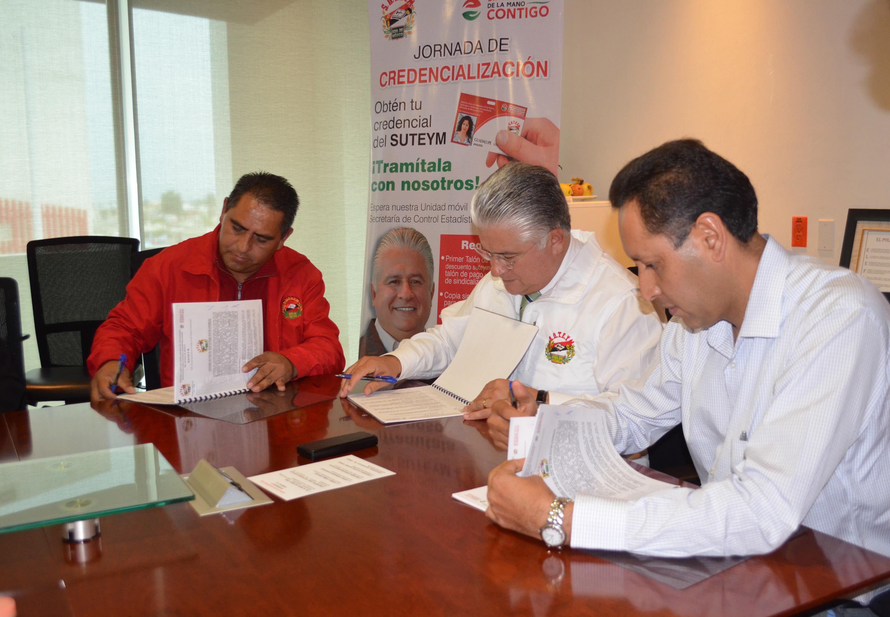 Herminio Cahue Calderón, Secretario General del SUTEYM, signó el Convenio de Sueldo y Prestaciones 2016 con el Dr. Alfredo Victoria López, Presidente Municipal Constitucional de Almoloya de Alquisiras; documento que establece un incremento salarial del 8% para los agremiados.En la Casa del Servidor Público Mexiquense, Cahue Calderón reconoció el esfuerzo financiero de la administración municipal; ya que significa una mejora que no sólo beneficia a los trabajadores de Almoloya de Alquisiras, sino también a la organización sindical que representa a más de 83 mil servidores públicos.