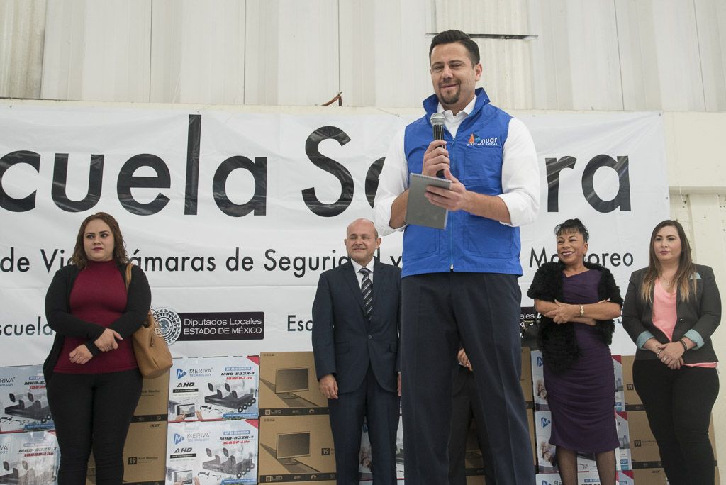 Con el propósito de reforzar la seguridad de la comunidad estudiantil de Cuautitlán Izcalli, especialmente niñas y niños, el diputado Anuar Roberto Azar Figueroa, coordinador del Grupo Parlamentario del PAN en la 59 Legislatura local, entregó equipos de videovigilancia a planteles de niveles preescolar y primaria, como parte del programa “Escuela Segura”.Ante autoridades escolares, padres de familia y representantes de organizaciones de la sociedad civil, como Asociación Nacional Sayde, la Comisión de Organización de México por los Derechos Humanos, Sociedades en Lucha y Sueños Infinitos, el diputado dijo que la obligación de todos los actores sociales y políticos es proteger a los menores y a sus derechos.