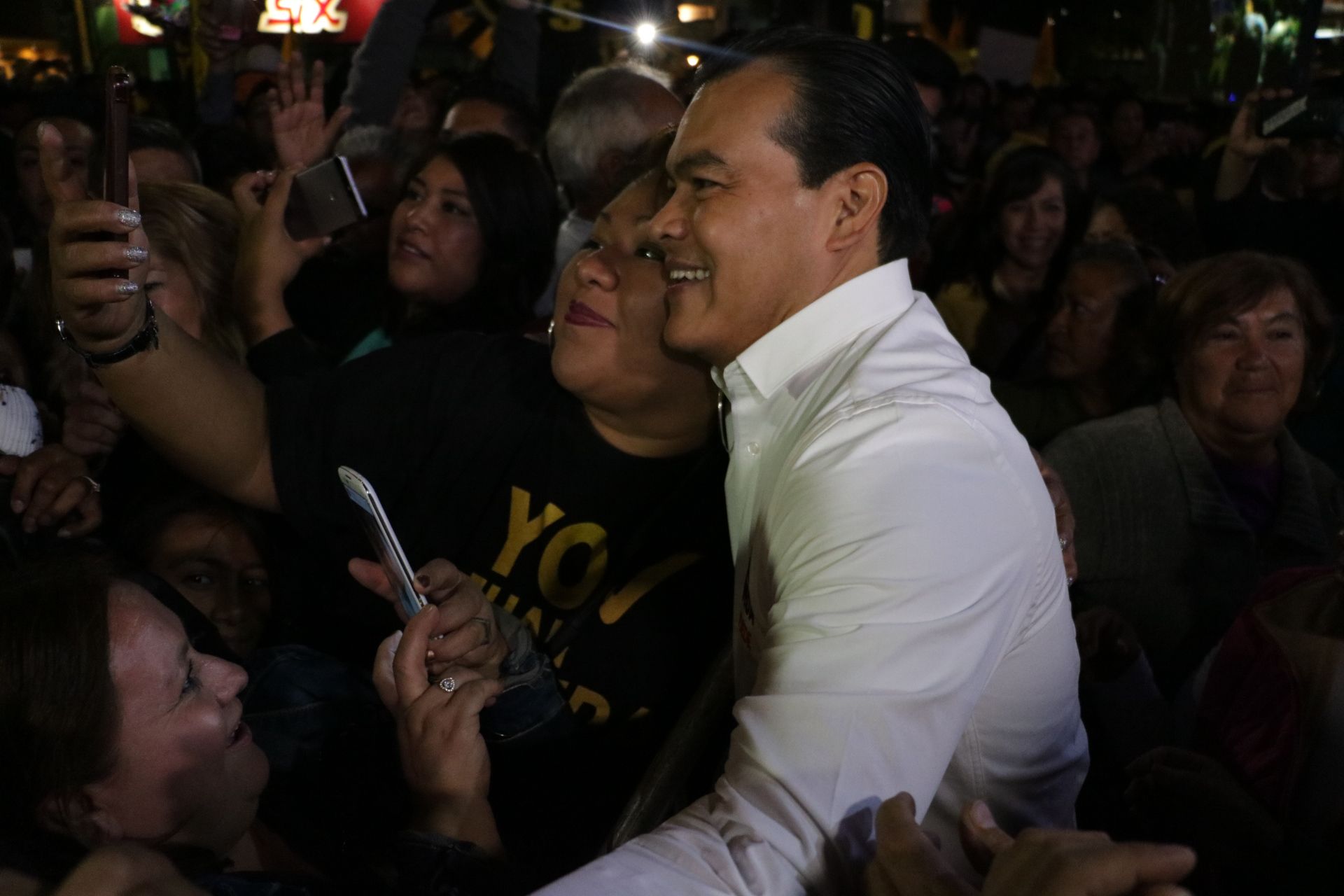 ¡Va a ganar la gubernatura del Estado de México!, expresó el candidato quien fue arropado por cientos de militantes provenientes de diversos municipios del Estado de México, que al mismo tiempo lo ovacionaron.