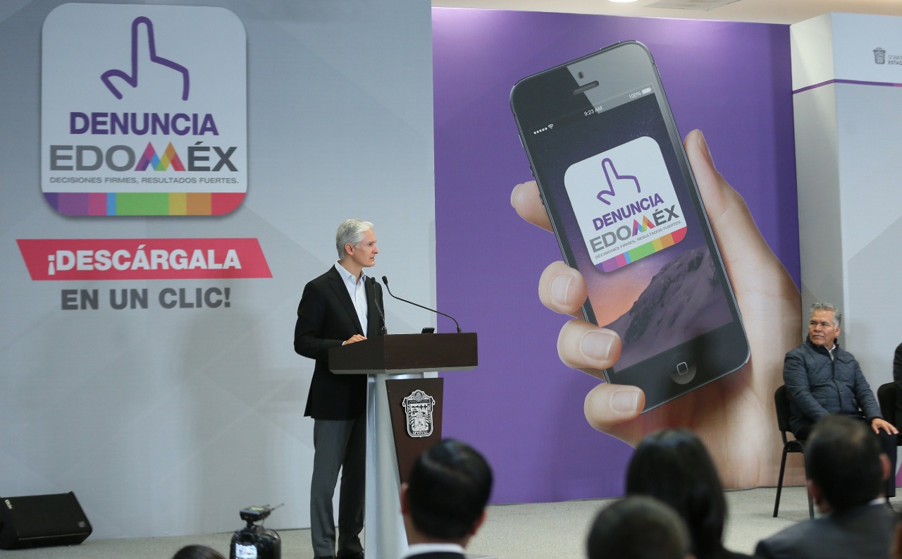 Alfredo Del Mazo indicó que esta aplicación es de fácil acceso, forma parte del compromiso de construir un gobierno con mayor apertura y participación ciudadana, protege los datos personales de los usuarios, además de que el proceso para levantar la denuncia es de manera sencilla e inmediata.