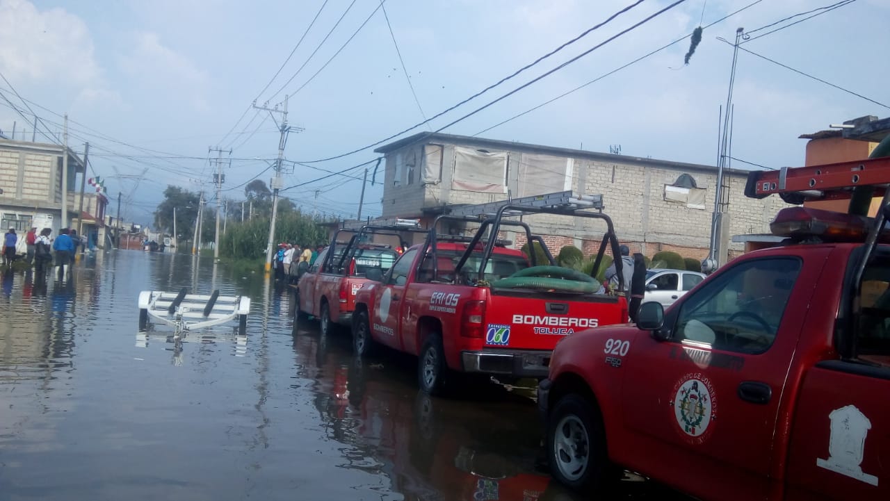 Bomberos y personal de Protección Civil de Toluca se establecieron en las calles Potrero, Arboledas y 12 de Diciembre, donde participaron en tareas de limpieza de un plantel del Instituto de Capacitación y Adiestramiento para el Trabajo Industrial (ICATI), ubicado en la calle Ignacio Allende.