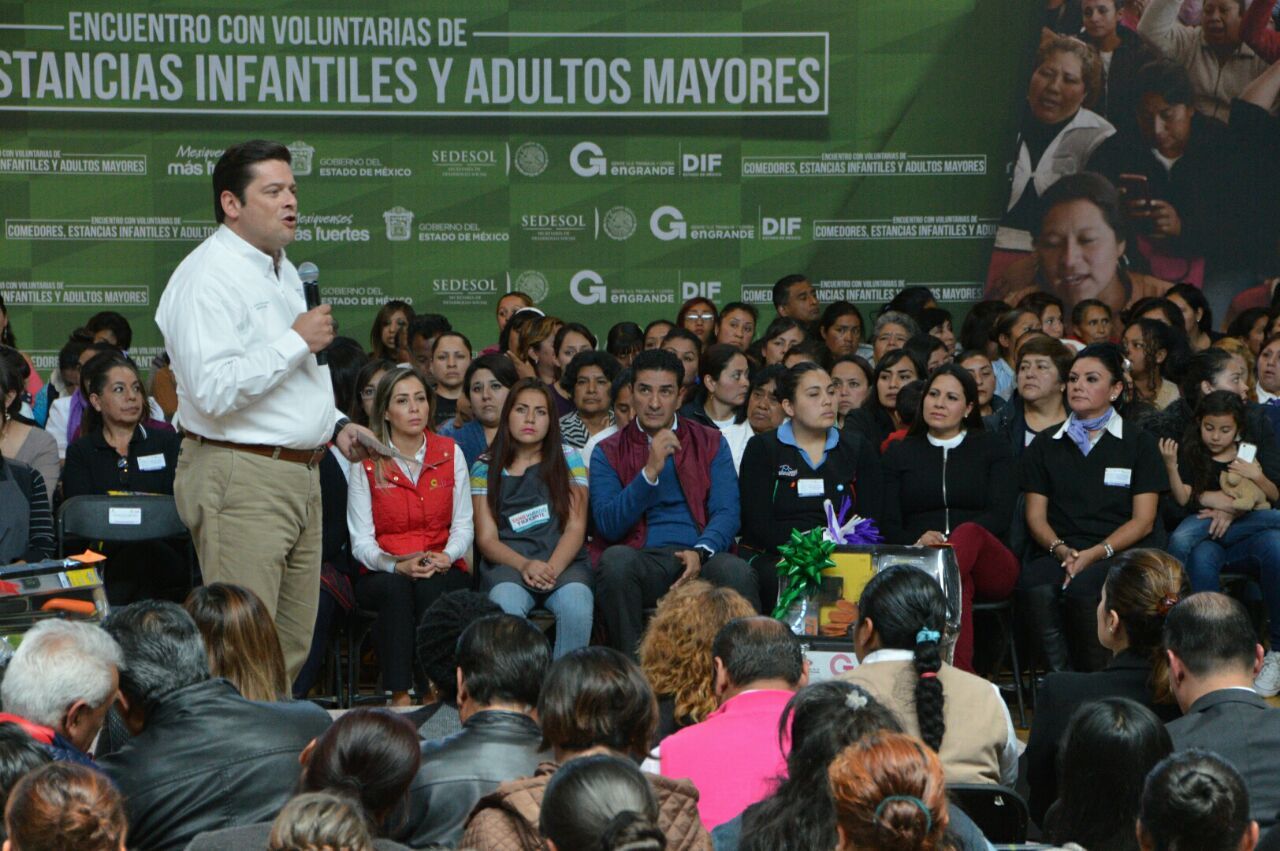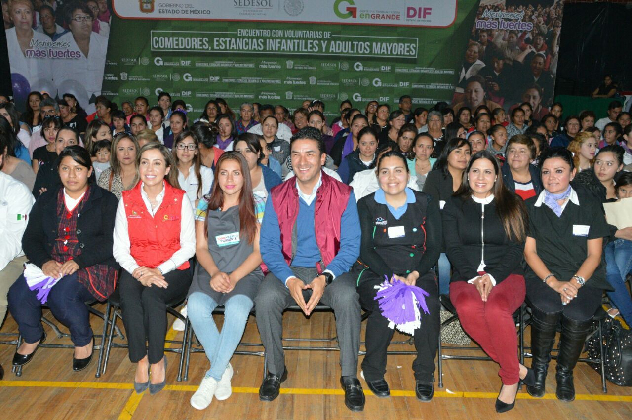 Previo al evento, Víctor Estrada y la Presidenta del DIF, América Rangel acompañaron a la Presidenta del DIFEM, Isis Ávila en el Encuentro con Voluntarios de Comedores, Estancias Infantiles y Adultos Mayores.