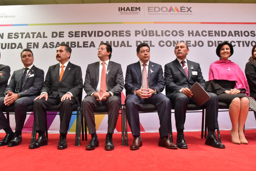 Toluca de Lerdo, México Con la representación del Poder Legislativo, el diputado Miguel Sámano Peralta, vicepresidente de la Junta de Coordinación Política, acudió a la XIX Reunión Estatal de Servidores Públicos Hacendarios, constituida en asamblea anual del Consejo Directivo, que encabezó el presidente de éste, Rodrigo Jarque Lira, secretario de Finanzas del gobierno estatal.