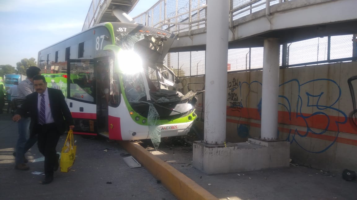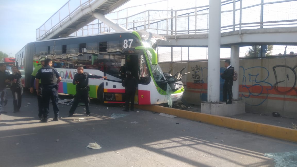 Alrededor de las 10:00 horas, la unidad articulada de la Línea 1 del Mexibús, con número económico 87, se impactó con la rampa de un puente peatonal sobre la Avenida Carlos Hank González, poco antes de llegar a la estación Industrial, en dirección a Ciudad Azteca.
