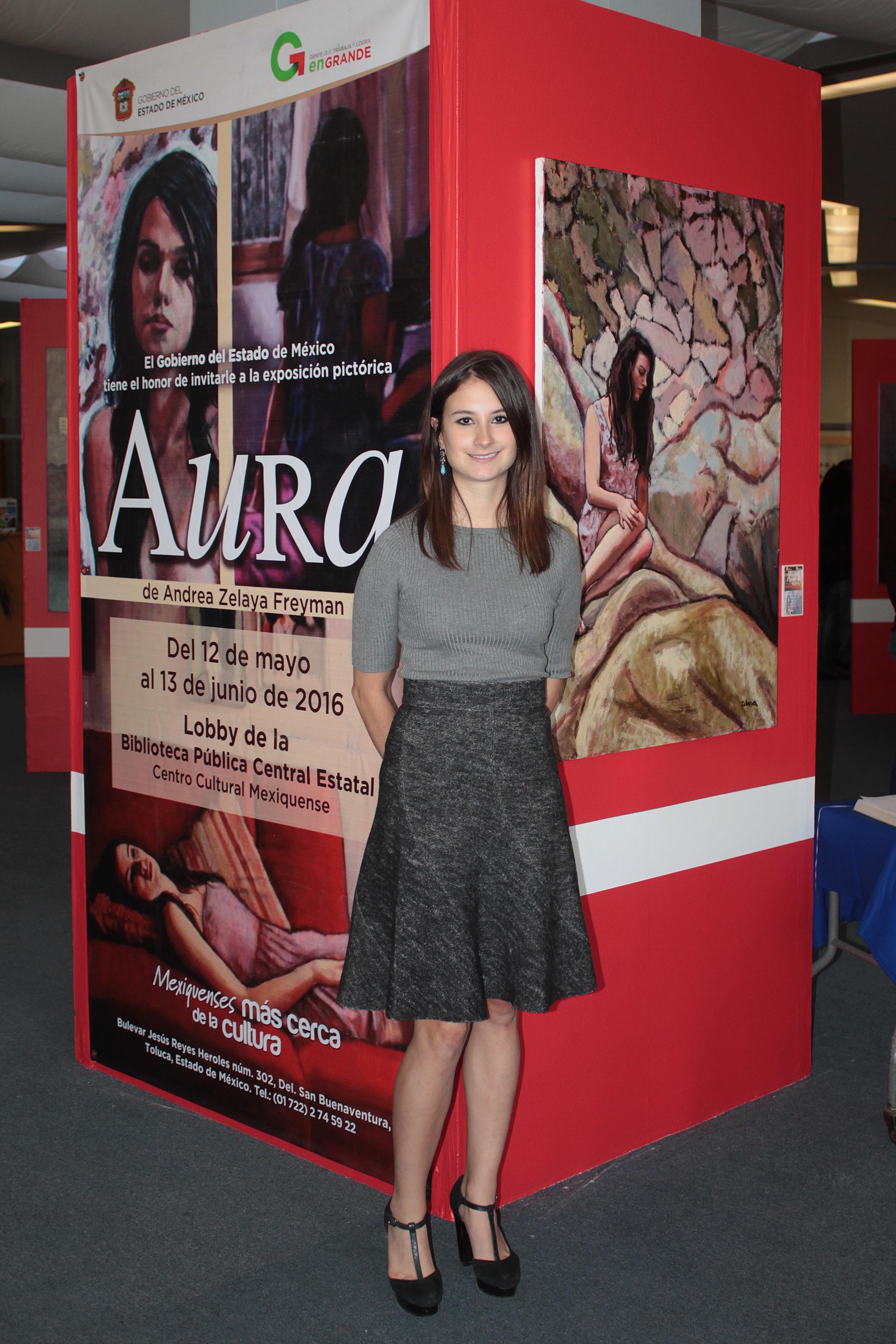Con el propósito de ofrecer espacios donde artistas locales puedan compartir su talento con el público mexiquense, la Secretaría de Cultura a través de la Biblioteca Pública Central Estatal (BPCE), gestionó la presentación de la exposición pictórica “Aura” de la joven artista Andrea Zelaya Freyman, la cual se extiende la exhibición hasta el 31 de julio, y se encuentra en el Lobby de esta emblemática biblioteca.