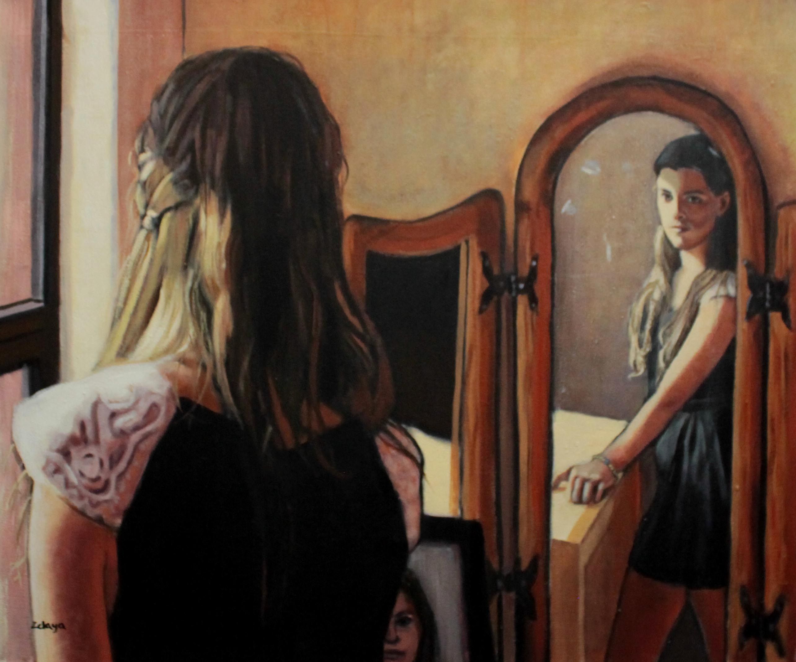 Andrea Zelaya nació en la ciudad de México en el año de 1989, estudió pintura en la Escuela de Bellas Artes de Toluca, en el periodo en que estudió ahí se apasionó por el grabado gracias al excelente maestro, Héctor Mercado.