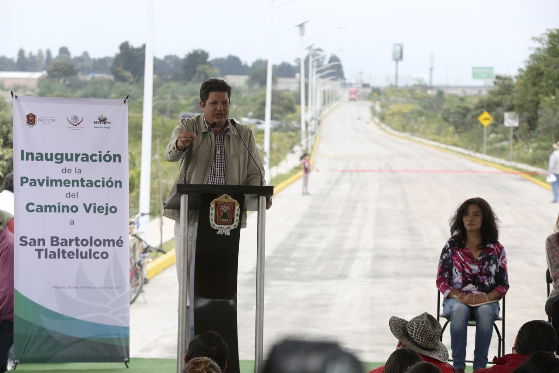 Con una inversión de 19.8 millones de pesos, el gobierno de Metepec entregó la pavimentación del antiguo camino de San Miguel Totocuitlapilco a San Bartolomé Tlaltelulco, favoreciendo con ello a más de 250 mil habitantes de cuatro pueblos originarios.Acompañado de la Senadora de la República, Ana Lilia Herrera Anzaldo, el presidente municipal David López Cárdenas, resaltó la conclusión del proyecto que impacta favorablemente en la movilidad de las y los vecinos de las comunidades de San Miguel Totocuitlapilco, San Bartolomé Tlaltelulco, Santa María Magdalena Ocotitlán y San Lorenzo Coacalco.