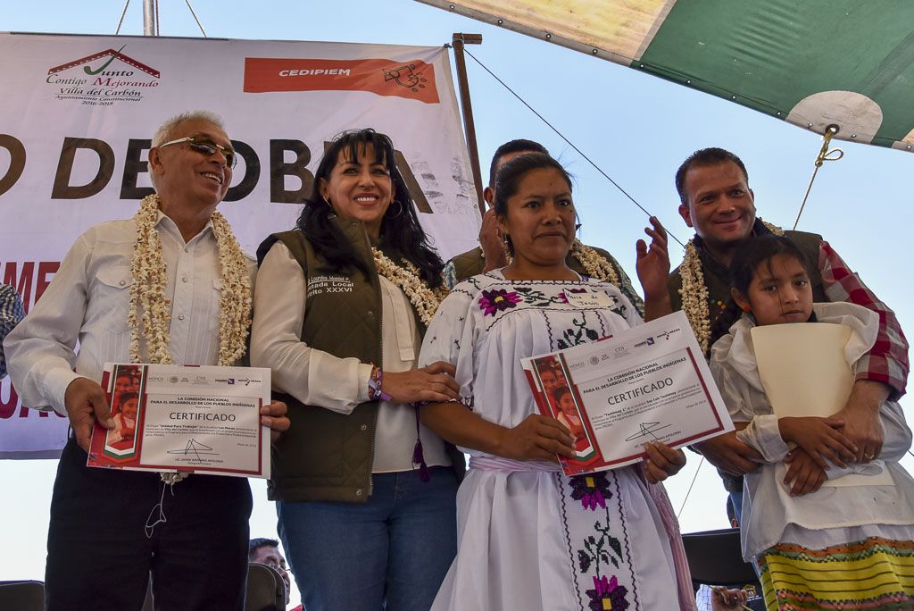 En su oportunidad, ante Jaime Jacinto Barrera, secretario del ayuntamiento y representante del alcalde Javier Cruz Monroy, Javier Jerónimo Apolonio reconoció a la diputada por ser “una gran promotora del municipio”, además de subrayar el trabajo que la administración del presidente Enrique Peña Nieto realiza en favor de las comunidades indígenas de todo el país.