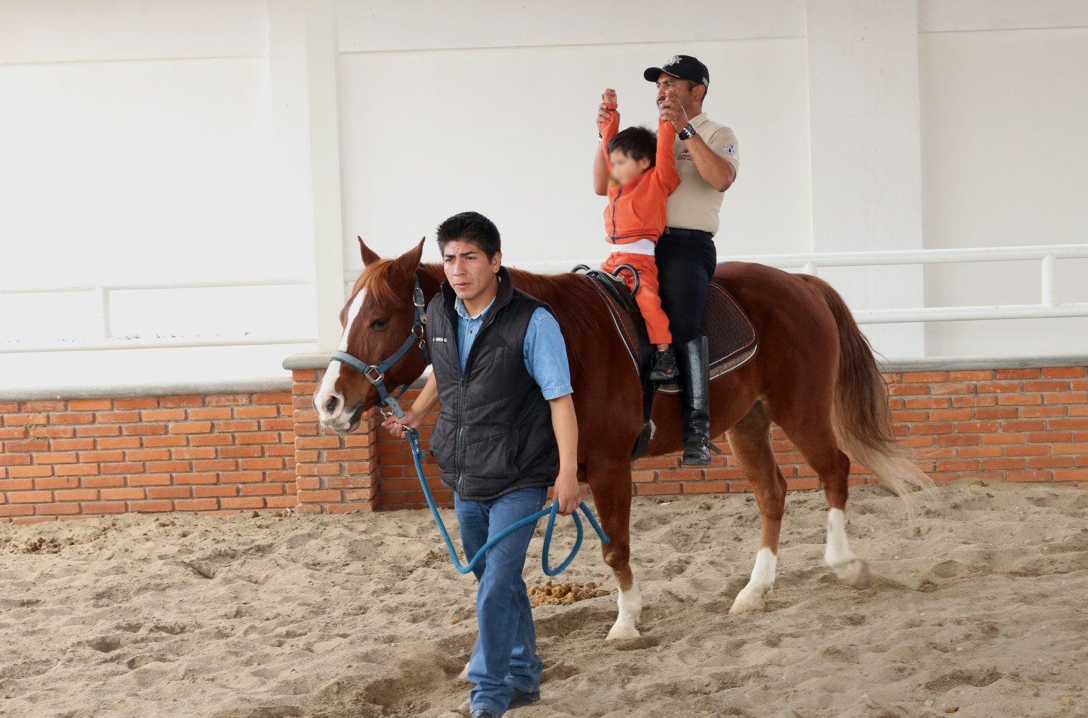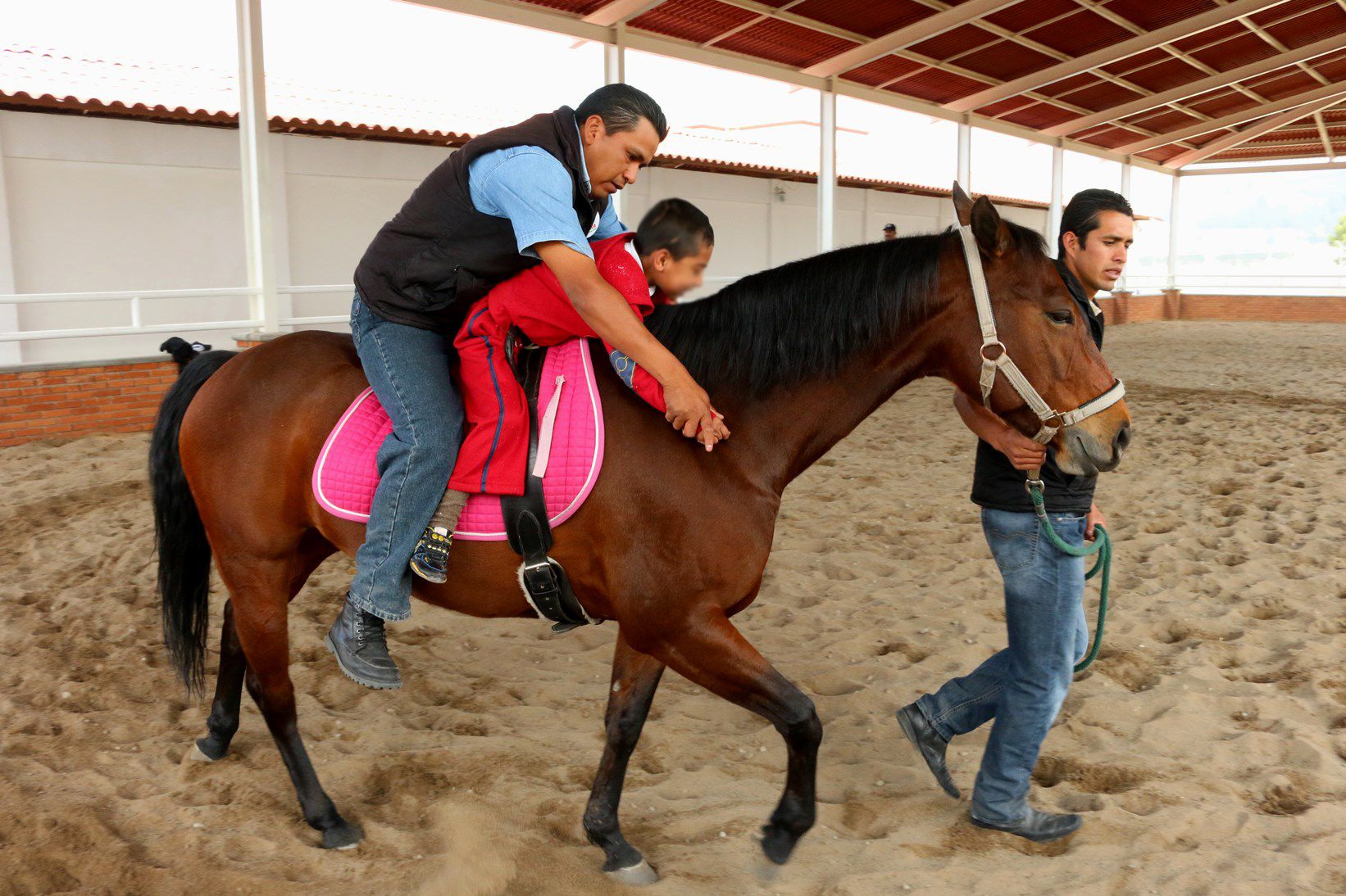 Dany, es un pequeño que padece retraso psicomotor y parálisis cerebral, es uno de los niños que acude a las equinoterapias del DIF Toluca, Rocío, su madre, asegura que su hijo de siete años de edad ha mejorado tanto que, hace una semana, por primera vez, dijo “mamá” y logró caminar. Esto la llena de emoción y agradecimiento hacia la autoridad municipal que se preocupa y ocupa de que los niños y las niñas con alguna discapacidad mejoren su calidad de vida.La mejoría de este pequeño es un claro ejemplo del trabajo que se realiza en la Unidad Municipal de Equinoterapia (UNIMEQ), donde los pacientes aprenden a sentir y crecer a través del caballo; es un proyecto que garantiza tratamiento a niños y jóvenes con alguna discapacidad, uno de los grupos vulnerables que atiende el gobierno municipal de Toluca, a través del Sistema DIF.
