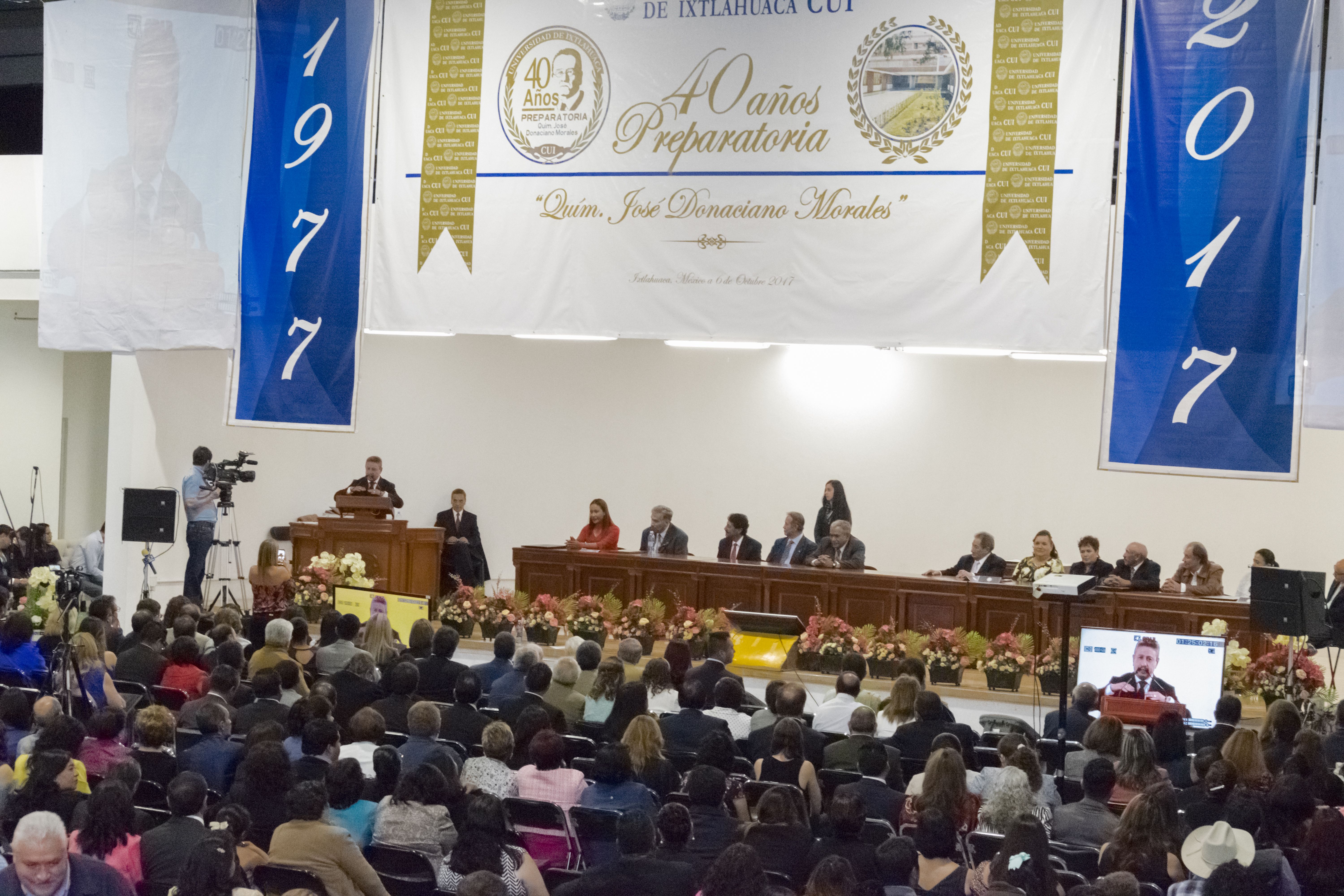 Con la entrega de reconocimientos a fundadores, ex directores, alumnos pioneros, distinguidos egresados y profesores que han cumplido 10, 20 y 30 años, la Universidad de Ixtlahuaca CUI celebró el 40 Aniversario de su Preparatoria; en lo que representó el reencuentro de quienes iniciaron las gestiones para su funcionamiento, sus primeros directores y profesores, acompañados de quienes comenzaron su bachillerato en 1977 y representantes de sus 39 generaciones. Se vivió una emotiva ceremonia en la que se recordaron todos los avatares realizados para su apertura, sus primeras cátedras, los salones de la parroquia de San Francisco de Asís, donde se recibieron un poco más de 200 alumnos de su primera generación, y el recorrer lleno de logros, triunfos y realizaciones que han marcado cuatro décadas de la Preparatoria de Ixtlahuaca: cerca de 200 primeros lugares obtenidos en olimpiadas y concursos de conocimientos con representaciones estatales y nacionales, en música, danza, teatro y en el deporte, en la formación de líderes en todos los campos de la ciencia, las humanidades, el arte y la tecnología; así se dio la bienvenida a químicos, médicos, ingenieros, abogados, literatos, escritores, profesores, investigadores, servidores y funcionarios públicos, empresarios y comerciantes que le han dado lustre a la Escuela Preparatoria.