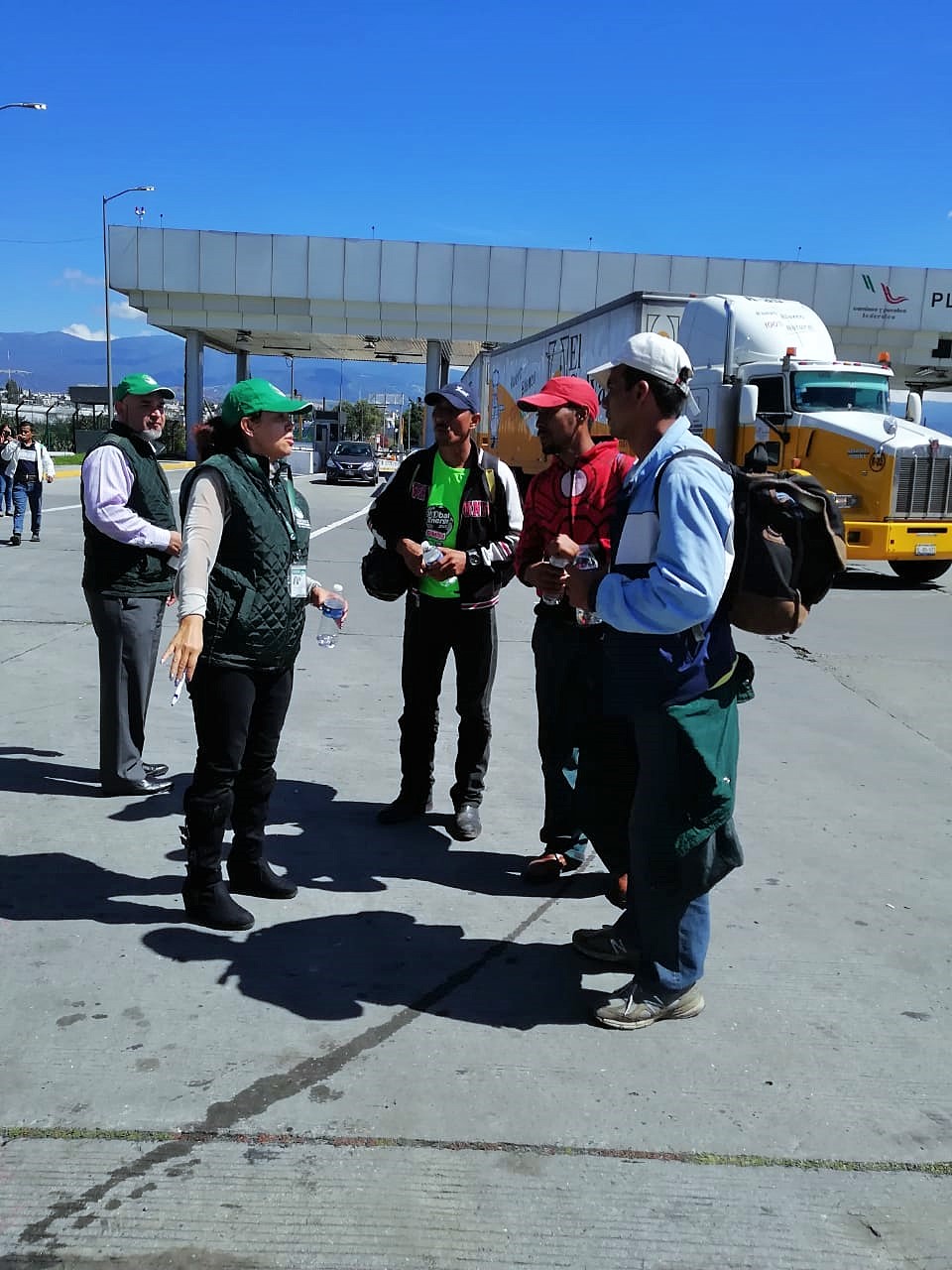 En su camino hacia la Ciudad de México para llegar a su destino que es Estados Unidos, personal de la Defensoría estatal de Habitantes entregó alimentos y ropa para niños, niñas, adultos mayores, hombres y mujeres; brindó orientación jurídica y servicios médicos, además de verificar la atención otorgada a 50 personas por infecciones respiratorias, cansancio y a una mujer embarazada.