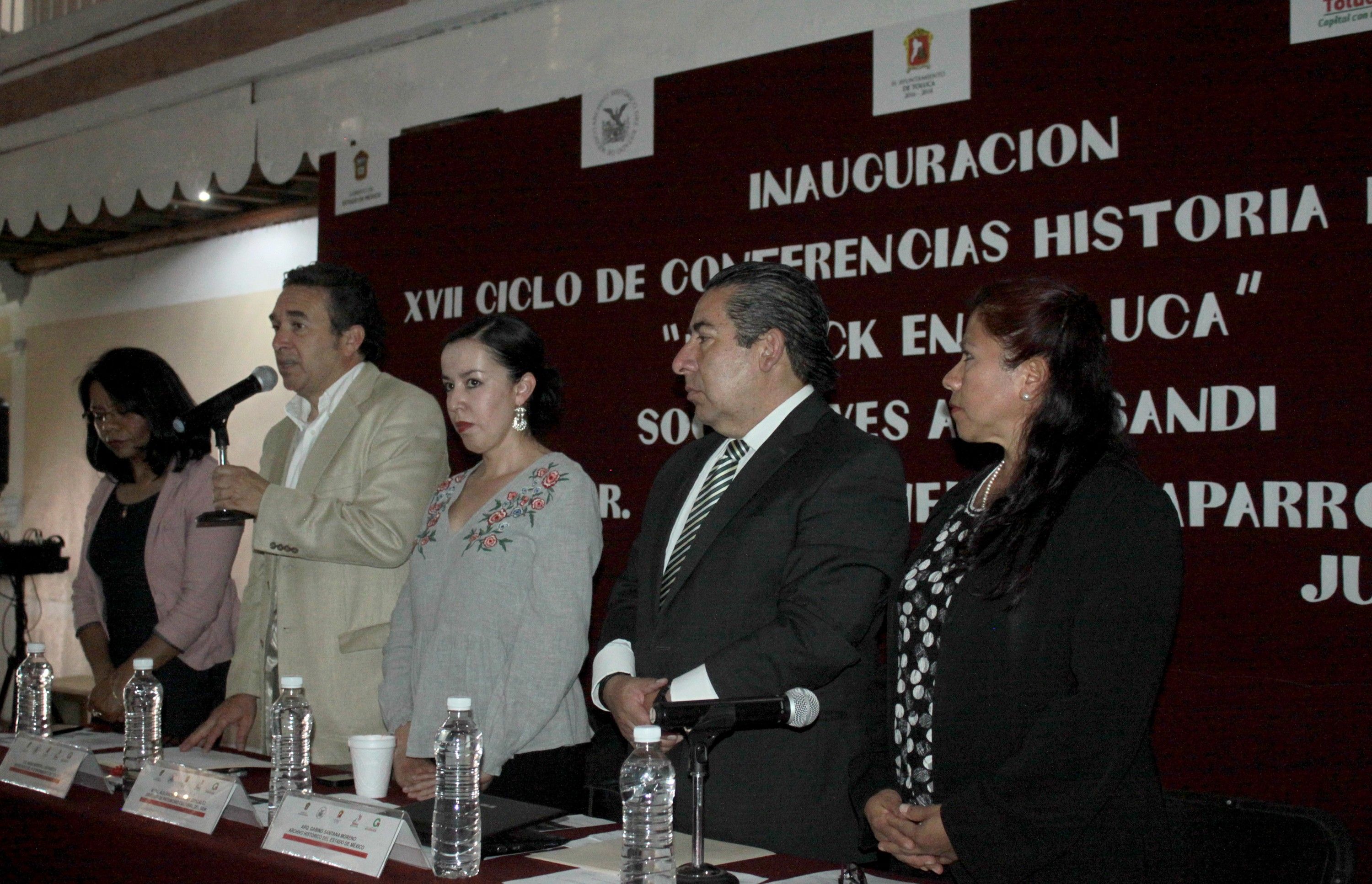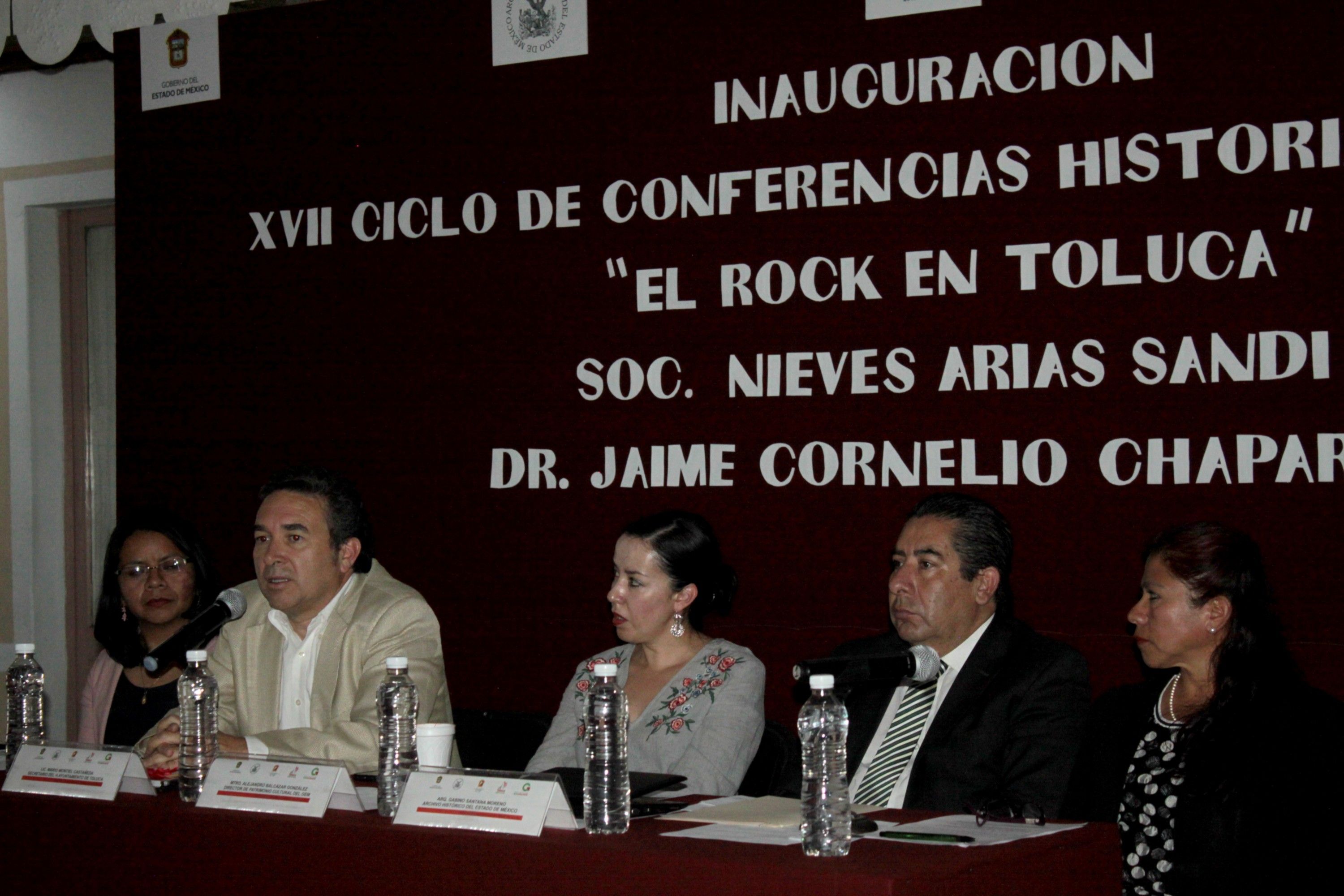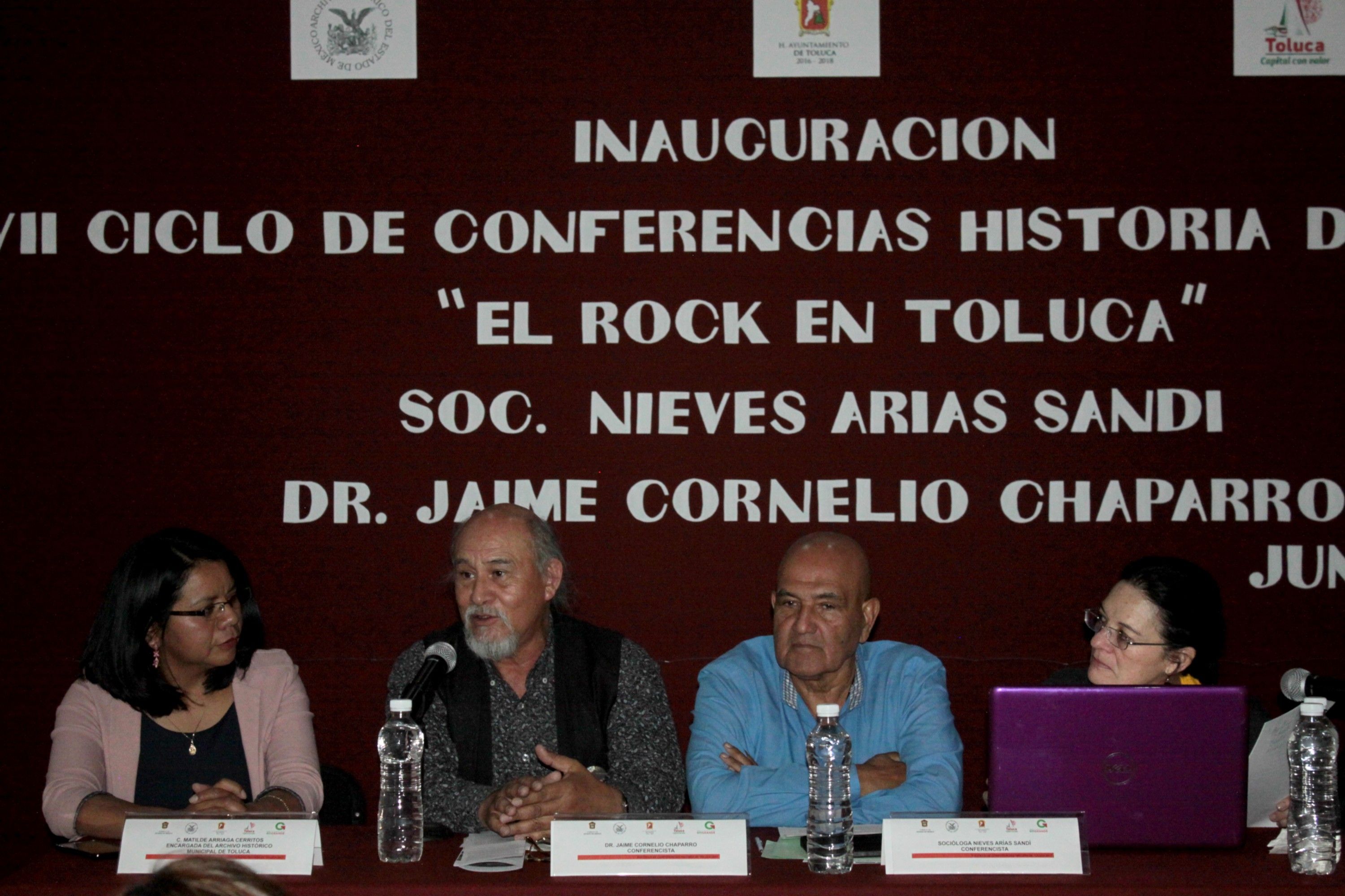 Con el objetivo de difundir las transformaciones que ha tenido el municipio de Toluca con el paso de los años en los ámbitos cultural, arquitectónico, religioso, histórico, así como la evolución de la propia vida, el Archivo Histórico del Estado de México en coordinación con el Archivo municipal realizan el ciclo de conferencias que cumple 17 años de existencia.Para dar inicio a este ciclo de conferencias, se presentó la socióloga Nieves Arias Sandí, acompañada por Jaime Cornelio Chaparro, quienes hablaron de “El rock en Toluca”, disertación que por más de una hora ofreció al público la manera en cómo surgió el rock a nivel mundial, cómo la juventud se rebeló ante esta modalidad, y por supuesto cómo fue la apropiación en Toluca y los efectos que causó en la sociedad.