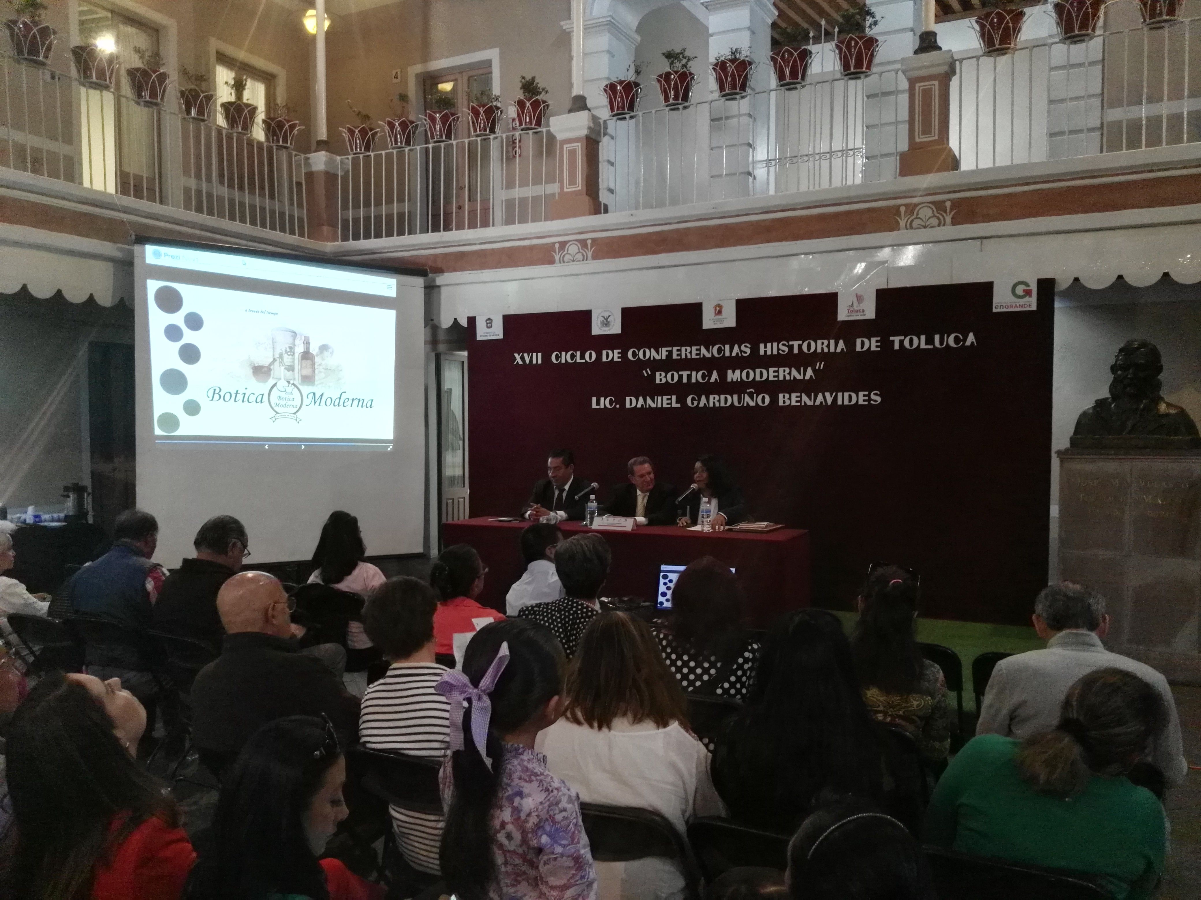 El Archivo Histórico del Estado de México, en coordinación entre con el Archivo Histórico Municipal, realiza cada martes una conferencia con especialistas e historiadores, quienes exponen los antecedentes de diversos temas, siendo el turno de la “Botica La Moderna”, que desde el año de 1898, ha logrado estar en la preferencia de sus clientes.