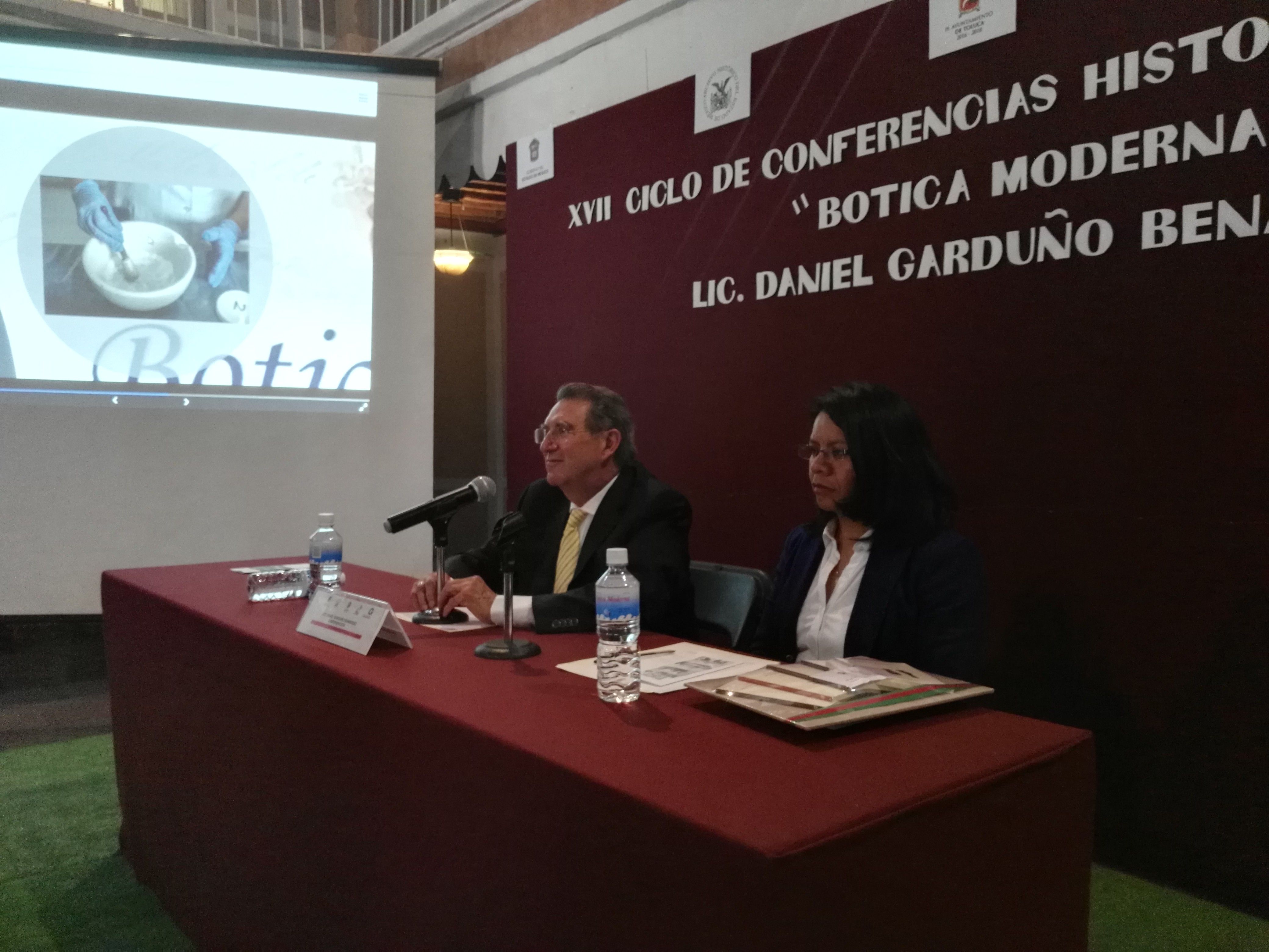 Daniel Garduño Benavides, nieto de Don Jesús Benavides, fundador de la Botica fue el ponente de esta segunda edición del ciclo de conferencias, y destacó que él forma parte de la tercera generación del negocio familiar, que ha encabezado por casi 50 años, cuya matriz se localiza en avenida Independencia en el centro de la capital mexiquense; el próximo año, la Botica La Moderna cumplirá 120 años.