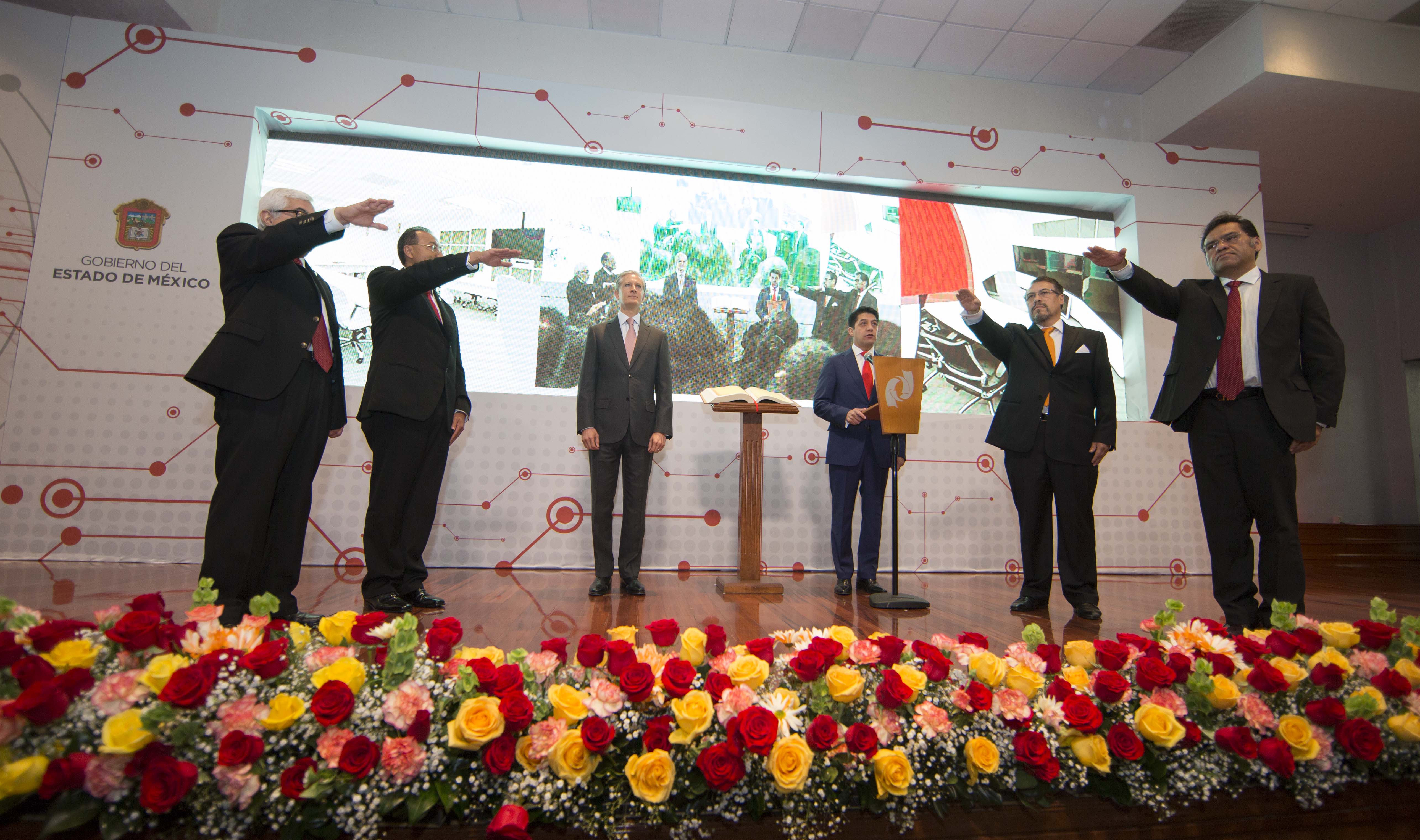 Además los presidentes de la Junta de Coordinación Política del Poder Legislativo, Cruz Juvenal Roa Sánchez y del Séptimo Periodo Ordinario de Sesiones de la Cámara de Diputados, Eric Moreno Valle; la magistrada presidenta del Tribunal de Justicia Administrativa, Myrna García Morón; el presidente de El Colegio Mexiquense, Humberto Benítez Treviño y el presidente municipal de Toluca, Fernando Zamora Morales.