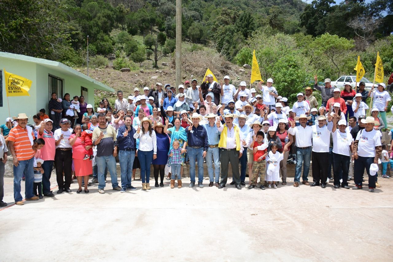 En el evento proselitista, Catalina Castaño estuvo acompañada por el candidato a primer síndico, del PRD, Loy Lara y del delegado de la comunidad Marcelino Mondragón, así como simpatizantes y militancia de Sultepec.