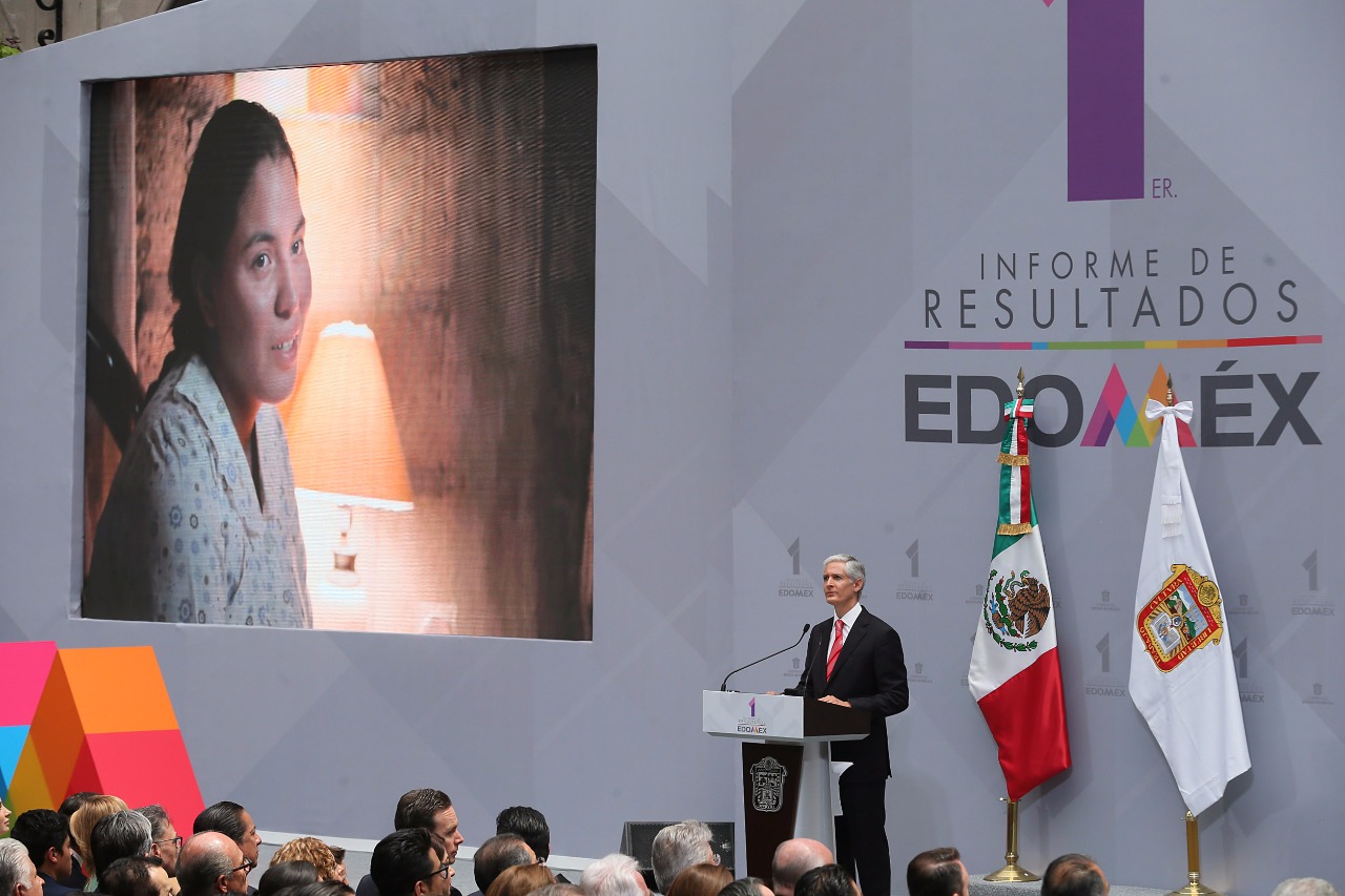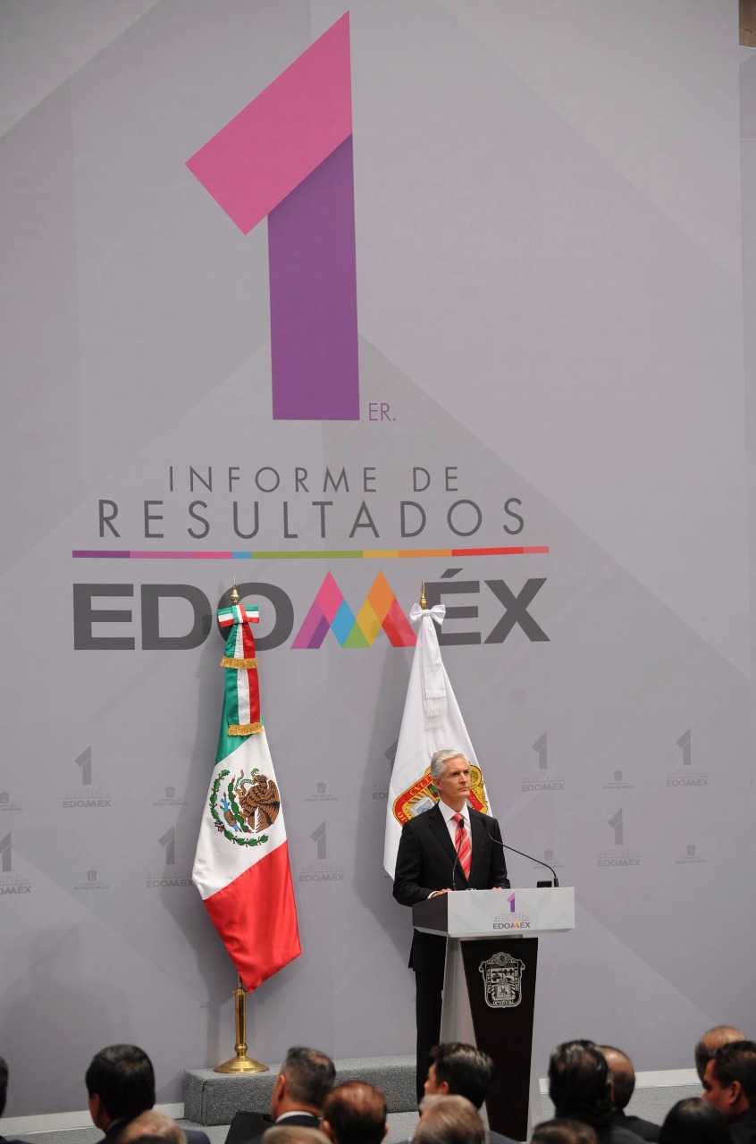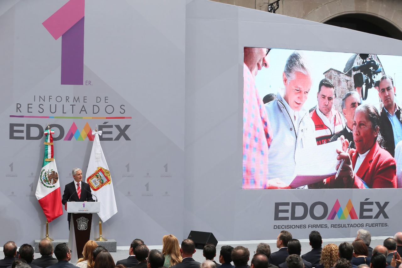 Toluca, Estado de México.- En su Primer Informe de Resultados, el Gobernador Alfredo Del Mazo Maza afirmó que su administración mantiene la firmeza de los objetivos para combatir la pobreza y la desigualdad, además de impulsar la salud, fortalecer la educación y brindar mayores condiciones de seguridad y desarrollo a los mexiquenses.