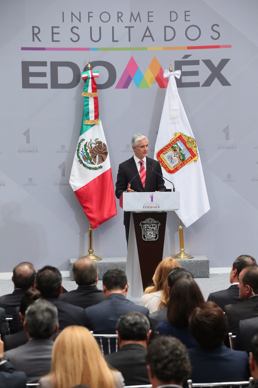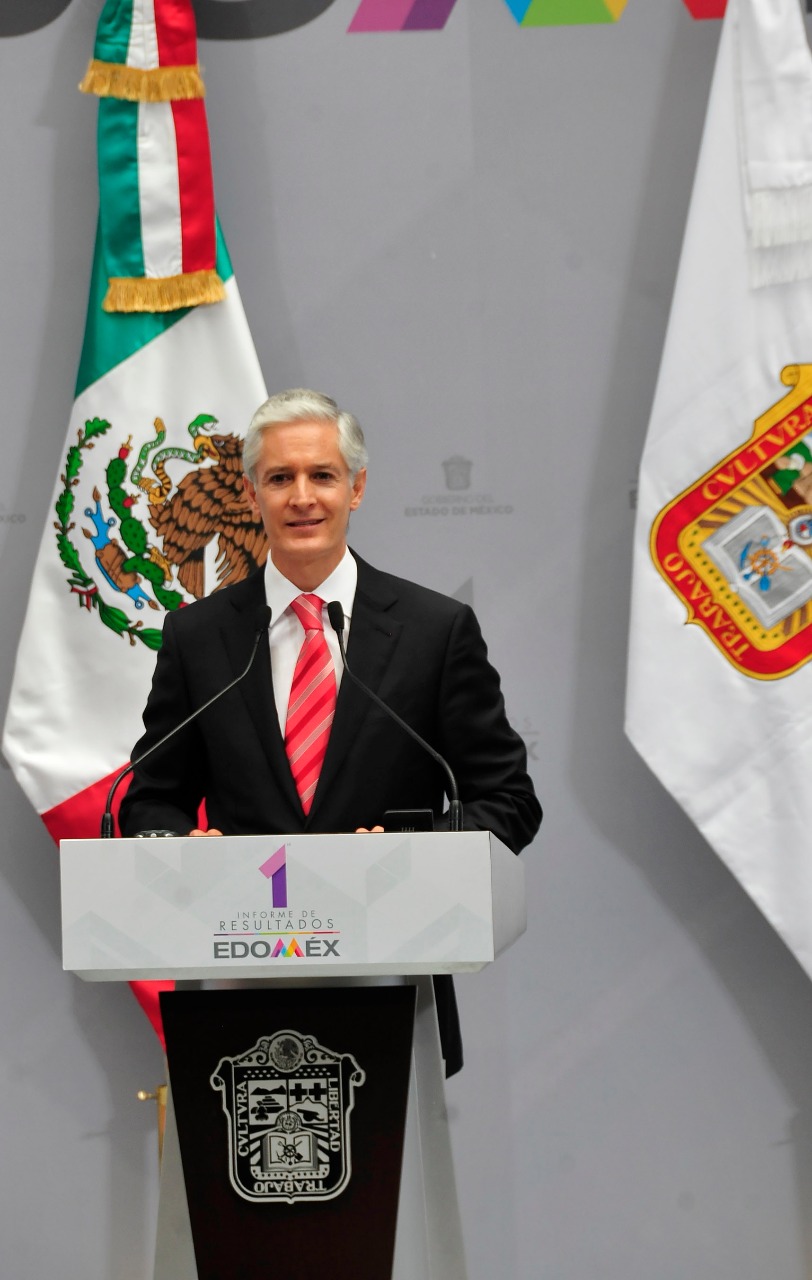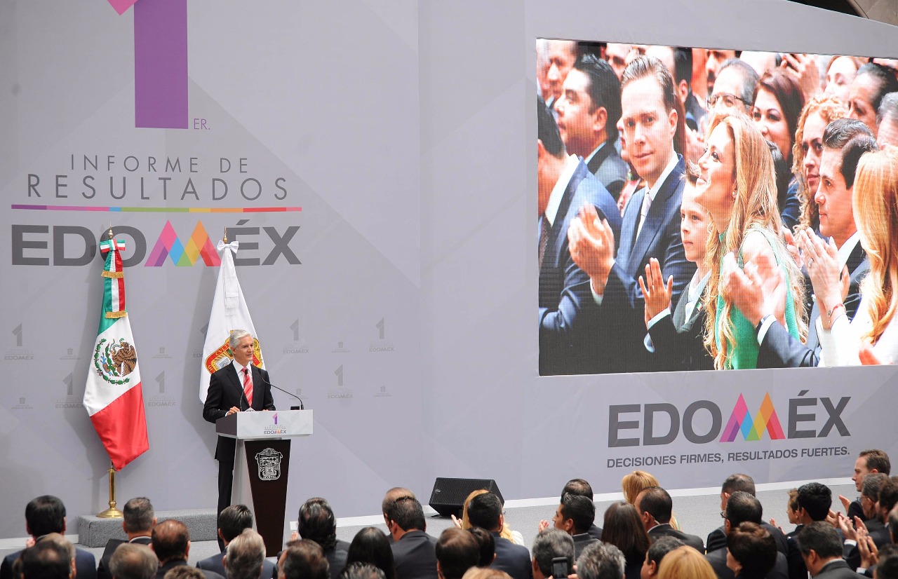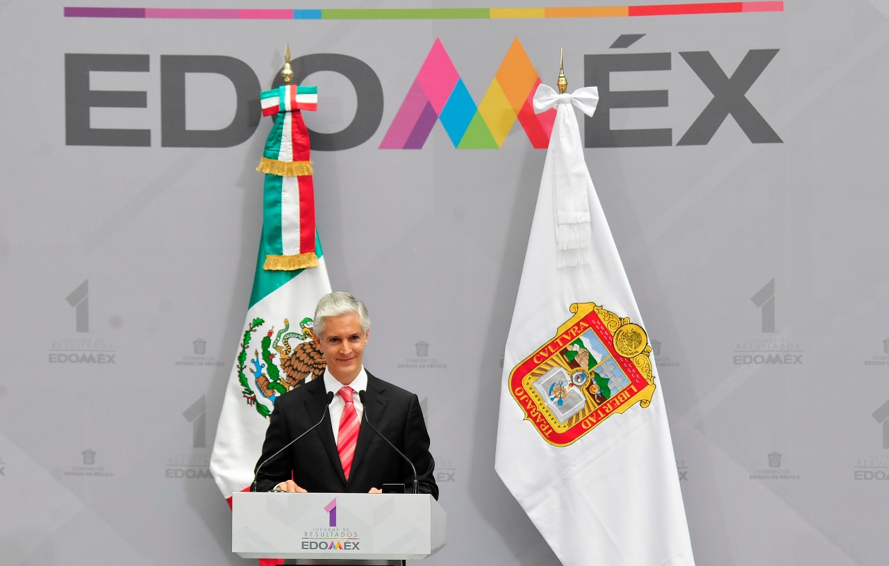 Toluca, Estado de México.- En su Primer Informe de Resultados, el Gobernador Alfredo Del Mazo Maza afirmó que su administración mantiene la firmeza de los objetivos para combatir la pobreza y la desigualdad, además de impulsar la salud, fortalecer la educación y brindar mayores condiciones de seguridad y desarrollo a los mexiquenses.