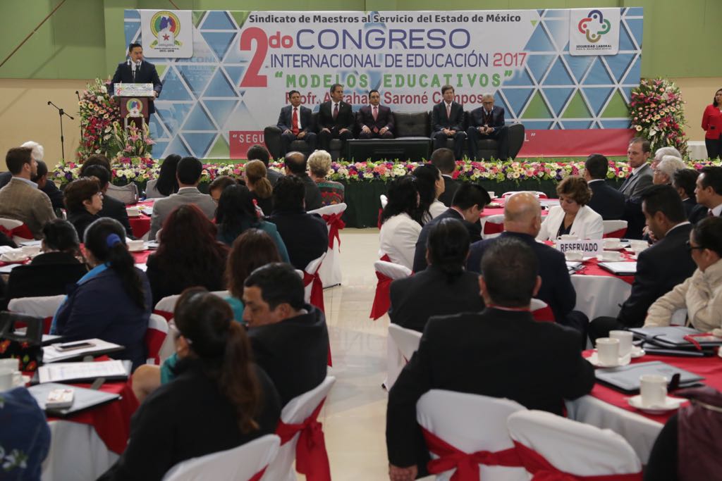 Especialistas de países como Argentina, Austria, España, Francia y nuestro país compartieron con docentes afiliados al Sindicato de Maestros al Servicio del Estado de México (SMSEM) conocimiento y experiencias en torno a los diferentes modelos educativos de sus naciones, durante el Segundo Congreso Internacional 2017, “Modelos Educativos”.Al encabezar la ceremonia inaugural de la sede Valle de Toluca, el Secretario General del SMSEM, Abraham Saroné Campos, destacó que la organización privilegia estos espacios para impulsar la capacitación y actualización, acción definida como la columna vertebral de la actual gestión.