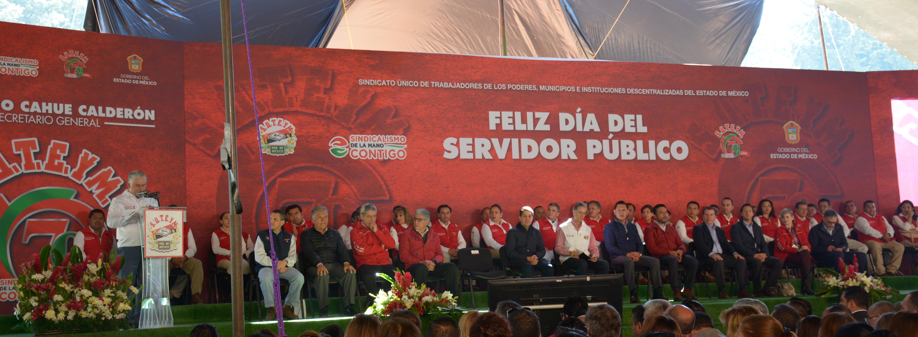 Herminio Cahue Calderón, Secretario General del Sindicato Único de Trabajadores de los Poderes, Municipios e Instituciones Descentralizadas del Estado de México (SUTEYM); y el Lic. Alfredo del Mazo Maza, Gobernador Constitucional del Estado de México, encabezaron la ceremonia del Día del Servidor Público y el 79 aniversario del sindicato. En este evento, el líder sindical mencionó que desde la consolidación del SUTEYM hasta la fecha, hombres y mujeres se han sumado a la defensa y protección de los derechos laborales, por lo que no sólo han contribuido a la historia del sindicato sino también a la forma de ejercer el sindicalismo.