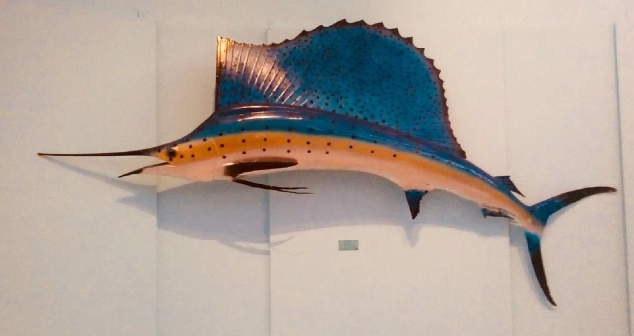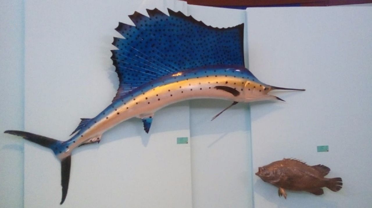 - Pueden apreciarse especies de peces como Vela, Ángel, Piedra, Puerquito y Jaibones en esta exposición de taxidermia.