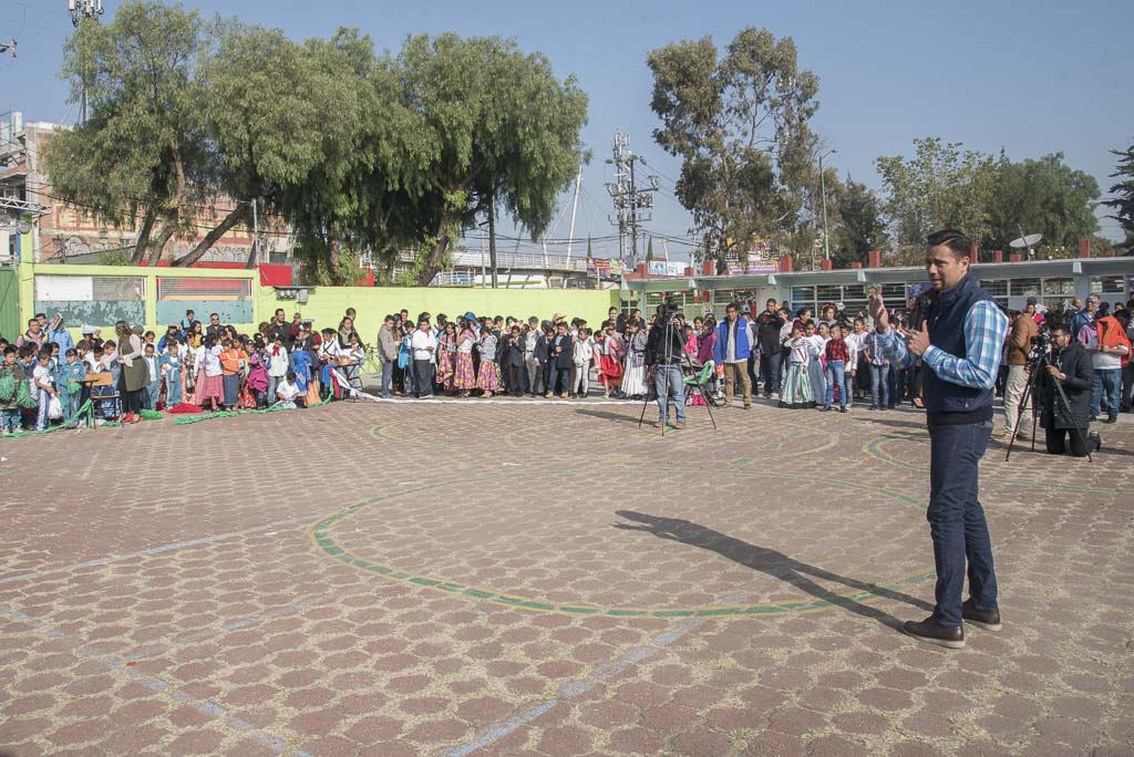 En la primaria “Juan Escutia”, el legislador también se comprometió a contribuir con cemento para la reconstrucción de la caseta de la escuela que resultó dañada por el sismo del pasado 19 de septiembre.