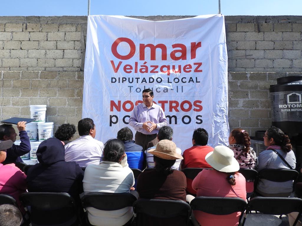 El diputado Jorge Omar Velázquez Ruíz (PRI), representante del segundo distrito electoral, entregó tinacos, luminarias, material de construcción, pintura e impermeabilizante para espacios públicos y educativos de la región norte de Toluca.En su oficina de atención ciudadana, acompañado de líderes de la zona norte, Omar Velázquez reconoció al gobernador Alfredo del Mazo Maza por atender sus gestiones, lo cual refleja su sensibilidad para responder a las necesidades más apremiantes de los mexiquenses.