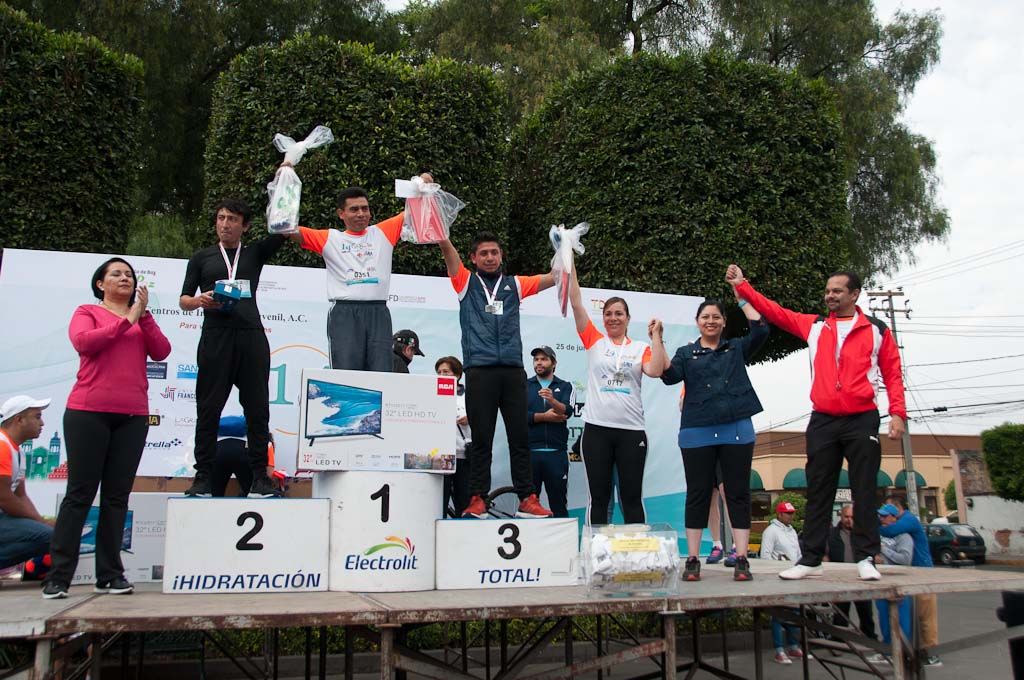 El segundo y tercer lugar (Flor Iturbide Rojas y Jazmín Bermúdez Flores, de la rama femenil; y Julián Sánchez Arteaga y Carlos Alberto Aranda, de la rama varonil) fueron reconocidos con un kit de artículos deportivos y audífonos, entre otros productos, mientras que todos los corredores, además de recibir una medalla, participaron en la rifa de una bicicleta, vajillas, becas de natación, cortesías para restaurantes y balones de fútbol.