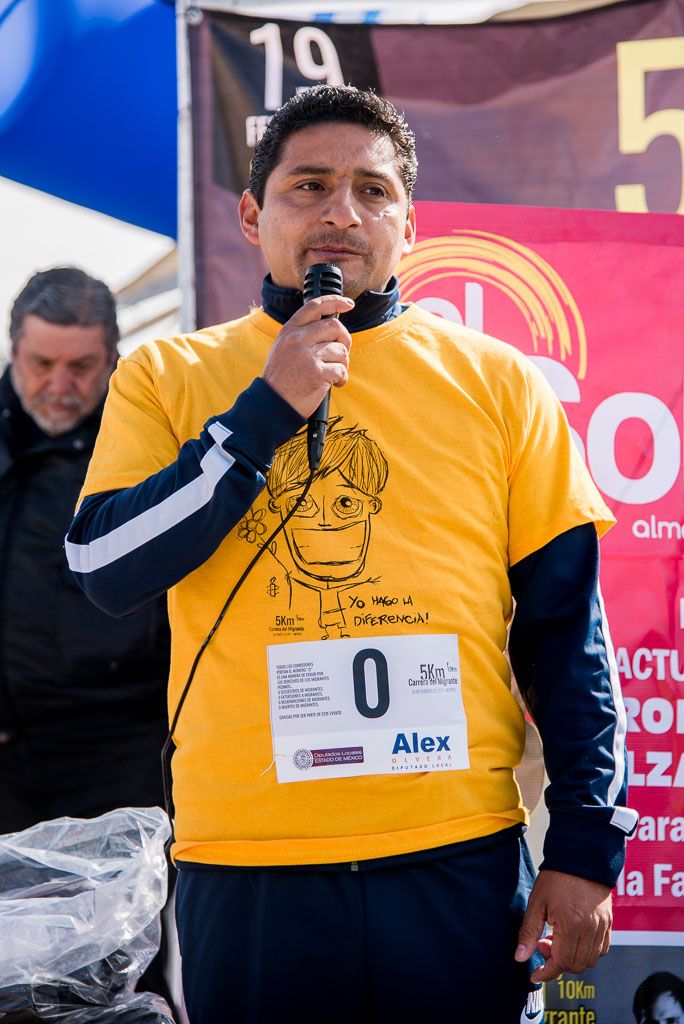 El diputado Alejandro Olvera Entzana (PAN) participó en la “Carrera del Migrante”, la cual promovió como presidente de la Comisión de Apoyo y Atención al Migrante de la 59 Legislatura mexiquense, y cuyos fondos serán destinados al albergue “Hermanos en el Camino”, que ofrece asistencia humanitaria, alimentos y posada, así como apoyo médico, psicológico y asesoría jurídica.Al participar en esta justa deportiva en el Parque Ambiental Bicentenario, de Metepec, junto a otros 600 corredores que portaron el número cero como un llamado simbólico a la “cero violación a los derechos humanos de los migrantes”, además de premiar a los tres primeros lugares de las categorías de 10 y cinco kilómetros de las ramas femenil y varonil, señaló las difíciles condiciones a las que se enfrentan los migrantes, por lo que agradeció a los participantes y patrocinadores de la carrera, toda vez que contribuyen a brindar un apoyo a este sector.