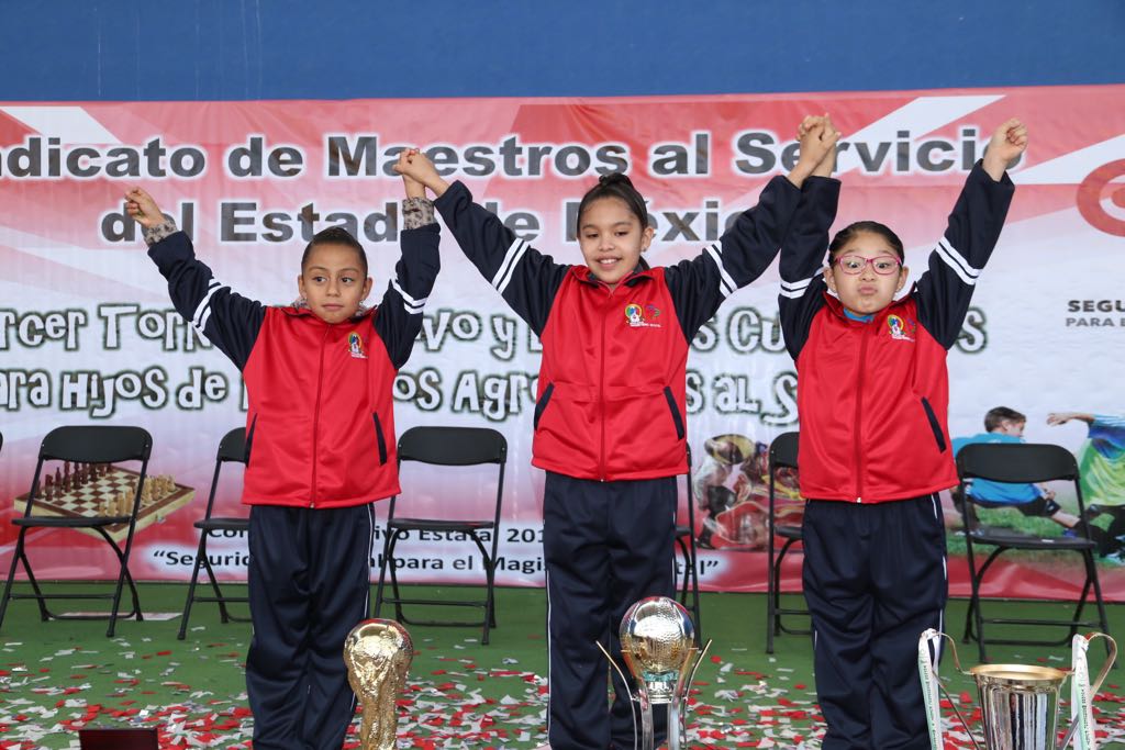 Santa María Rayón, México. La estructura de Impulso Juvenil del Sindicato de Maestros al Servicio del Estado de México realizó este 3er Torneo Deportivo y Eventos Culturales para Hijos de Maestros Afiliados al SMSEM implementados por el C.E.E. 2015-2018 en la Unidad Deportiva “Dionisio Cerón” de esta localidad. En esta tercera edición estuvieron presentes el Secretario de Trabajo y Conflictos de Secundarias Generales II y Coordinador de la Región Sindical No. 2 en representación del líder magisterial, El Secretario de Trabajo y Conflictos de Educación Media Superior Técnica, los Coordinadores Estatales de Impulso Juvenil Valle de México y Valle de Toluca, La Presidenta Municipal, la Síndico y una participante que representó a los convocados; así como la presencia de los padres de familia y los finalistas de estas justas. En su intervención, el Representante del Secretario General mencionó que así como se ha procurado la defensa y mejora de las condiciones laborales y profesionales de los agremiados, también se ha procurado, entendiendo su rol como madres y padres de familia, implementar estrategias de esparcimiento, convivencia y formación continua en la que puedan participar acompañando a sus hijos. Futbol, Básquetbol, Atletismo, Ajedrez, Canto, Baile por Pareja y Baile en Grupo. Esta es ya la tercera edición de este encuentro al que se convoca a los hijos de maestros y a los maestros mismos de todo el Estado. Año tras año este evento ha ido transformándose para mejorar y ofrecer condiciones más óptimas: diversidad de actividades, más participantes, mejores instalaciones, mejor organización y por supuesto obsequios y premios que incentiven la participación de nuestros hijos. Para nuestro Sindicato, la convivencia con nuestros seres queridos y la formación integral de las futuras generaciones resulta un factor fundamental. No se puede pensar en el bienestar del maestro si no se piensa en el bienestar de su familia. Este tercer torneo inició el 17 de marzo del año en curso y hoy concluye con éxito. De los ganadores destacan en Futbol Pony R9 1er Lugar; Futbol infantil 1er Lugar R10, Basquetbol Pony 1er Lugar R13, Basquetbol infantil 1er Lugar R11, Canto Individual Categoría Única 1er Lugar R10, Baile regional por pareja 1er Lugar R9, Baile Regional por Grupo 1er Lugar R7, Ajedrez 1er Lugar R 7, Femenil 1er Lugar R 6, Ajedrez Amateur Varonil 1er Lugar R 9, entre otros.
