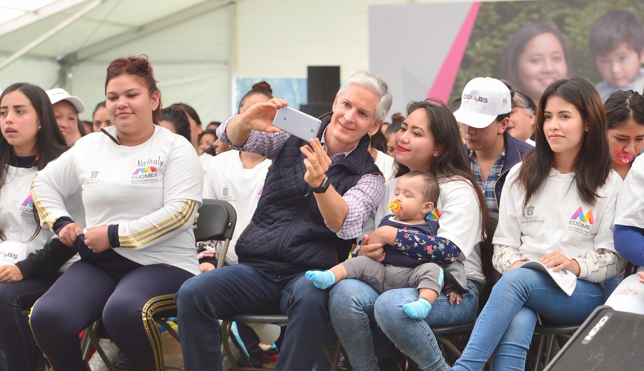 El Gobernador Alfredo Del Mazo indicó que en 2017 en el Estado de México se registraron más de 50 mil nacimientos de mamás menores de 20 años, de ahí la importancia de impulsar este tipo de programas que respaldan el desarrollo de estas mujeres mexiquenses y sus hijos, para que crezcan sanos y fuertes.