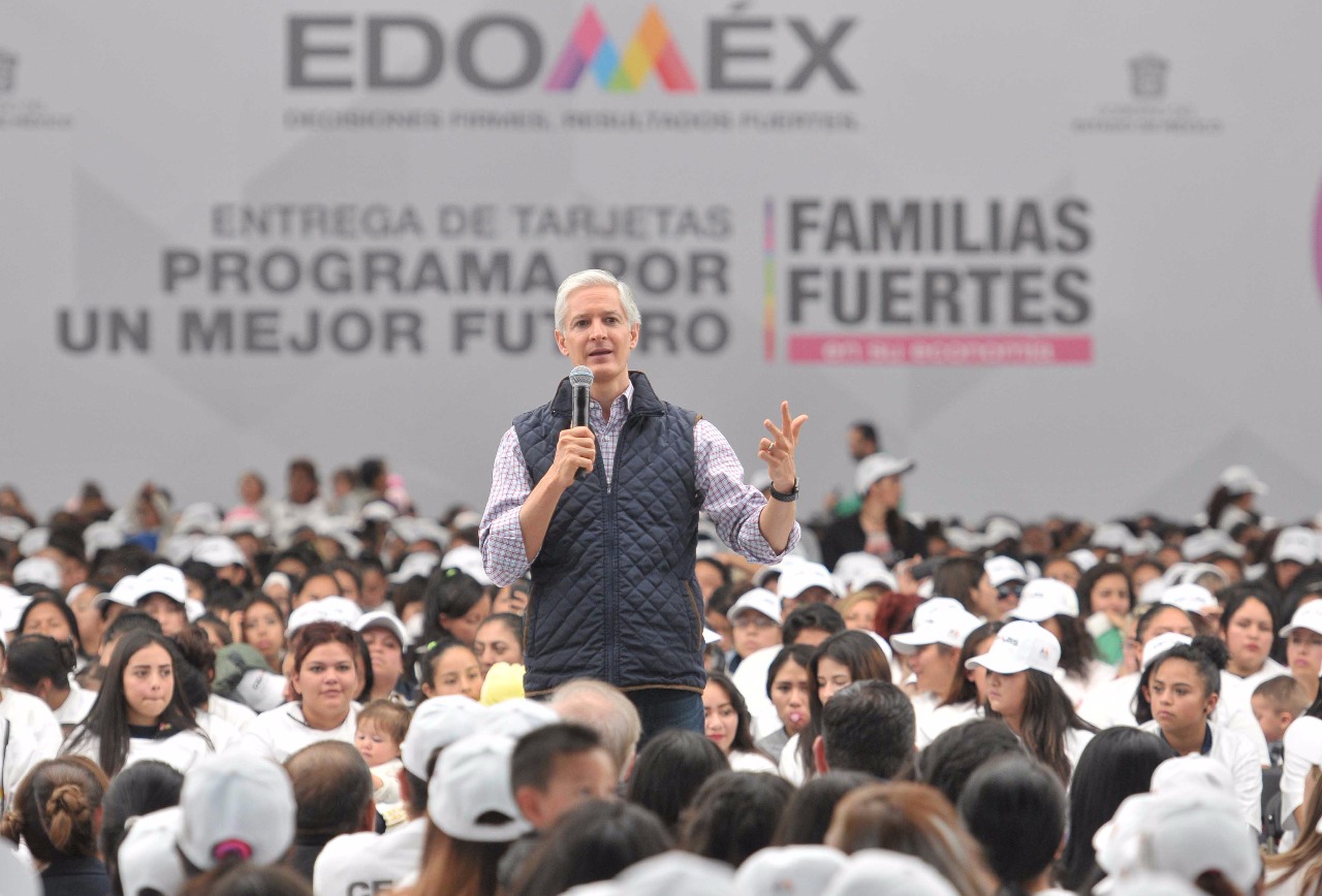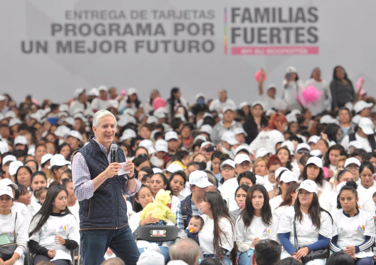 En este evento el mandatario estatal entregó tarjetas del programa Por un mejor futuro a mujeres mexiquenses de 44 municipios de la entidad.