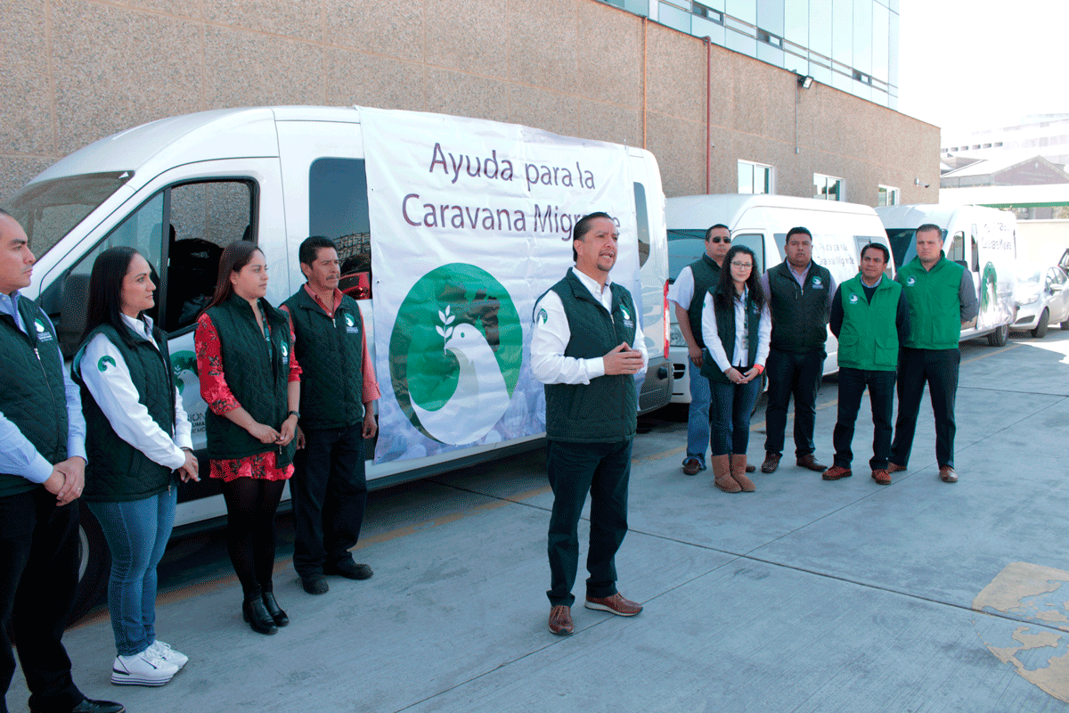 Toluca, México, 9 de noviembre de 2018.- Al dar el banderazo de salida a cuatro vehículos oficiales con ayuda humanitaria para integrantes de la “Caravana Migrante”, que se suman al despliegue de 15 Visitadores Generales y Adjuntos, además de personal auxiliar y una unidad de la Visitaduría Itinerante, el presidente de la Comisión de Derechos Humanos del Estado de México (Codhem), Jorge Olvera García apeló a la solidaridad de mexiquenses y mexicanos para apoyarlos.