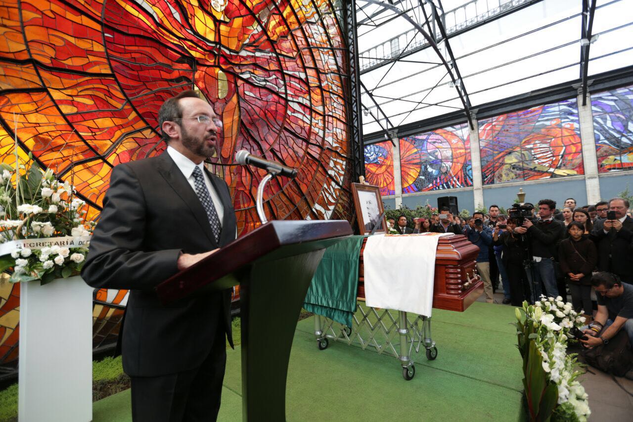 Previo al arribo del cuerpo del artista al Cosmovitral y luego de que se diera a conocer la muerte del artista nacido en 1934, la mañana del lunes 4 de abril, autoridades políticas encabezadas por el gobernador del Estado de México, Eruviel Ávila Villegas, el Secretario de Cultura, Eduardo Gasca Pliego y el rector de la Universidad Autónoma del Estado de México, así como amigos, familiares y miembros de la comunidad artística y cultural, se dieron cita el aula magna de la Universidad Autónoma del Estado de México para rendir homenaje a uno de los más grandes artistas plásticos que han nacido en territorio mexiquense.