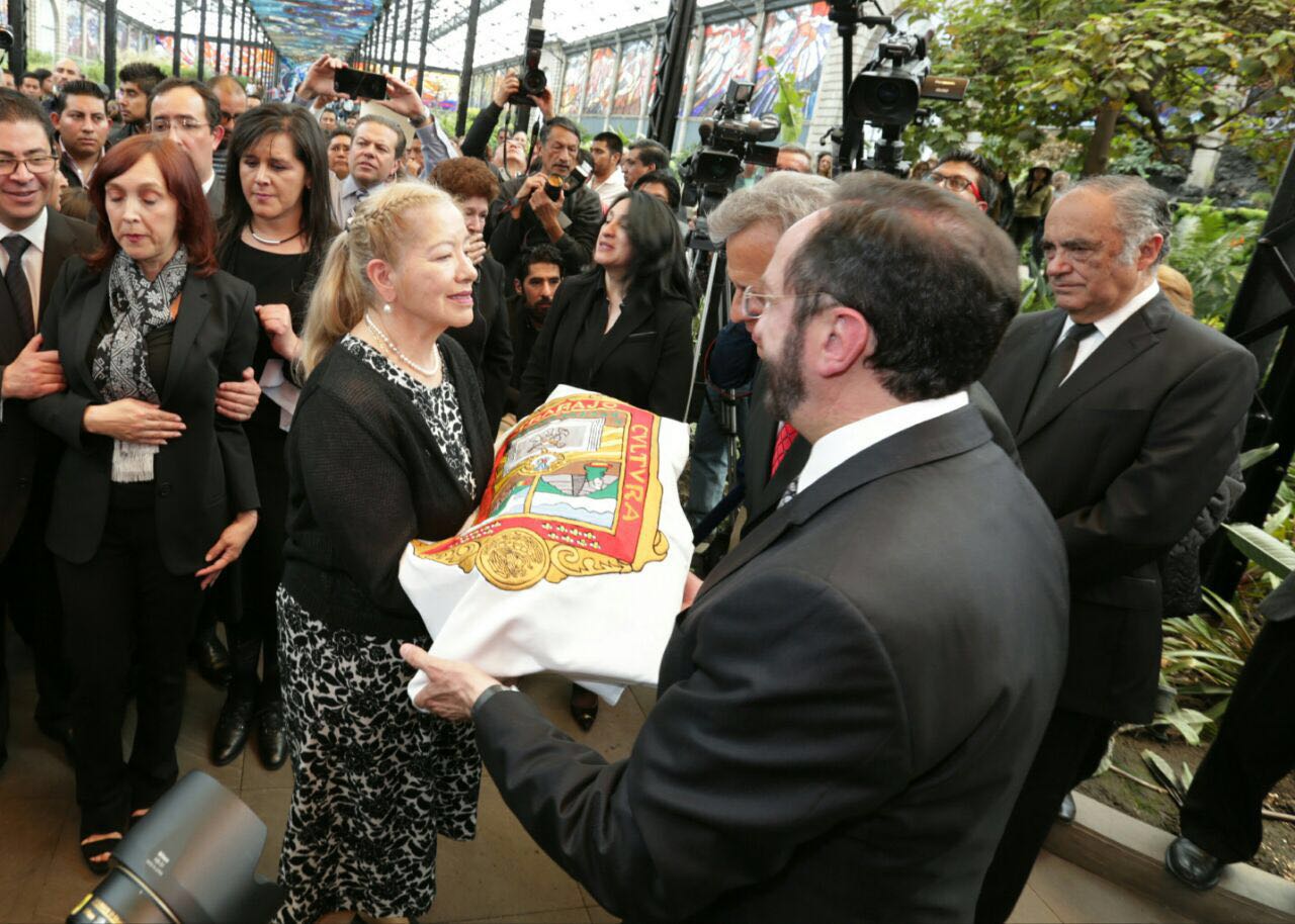 Posteriormente y luego de las guardias de honor, el féretro del artista fue trasladado al Cosmovitral Jardín Botánico para continuar con los homenajes de cuerpo presente, en este espacio administrado por la Secretaría de Cultura, los cientos de personas que se dieron cita para dar el último adiós recibieron con un prolongado aplauso de pie al cuerpo del artista que a partir de esta fecha comienza su periplo universal.