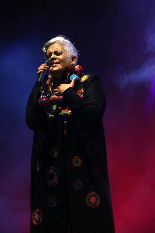 A la hora marcada en el programa, apareció en el escenario una de las cantantes más emblemáticas de la música contemporánea y tradicional del país con más de 36 discos y e innumerables premios internacionales en su haber. Eugenia León inició el concierto levantando al auditorio de los asientos rápidamente para acompañar a la artista con “Mi Gusto es”.