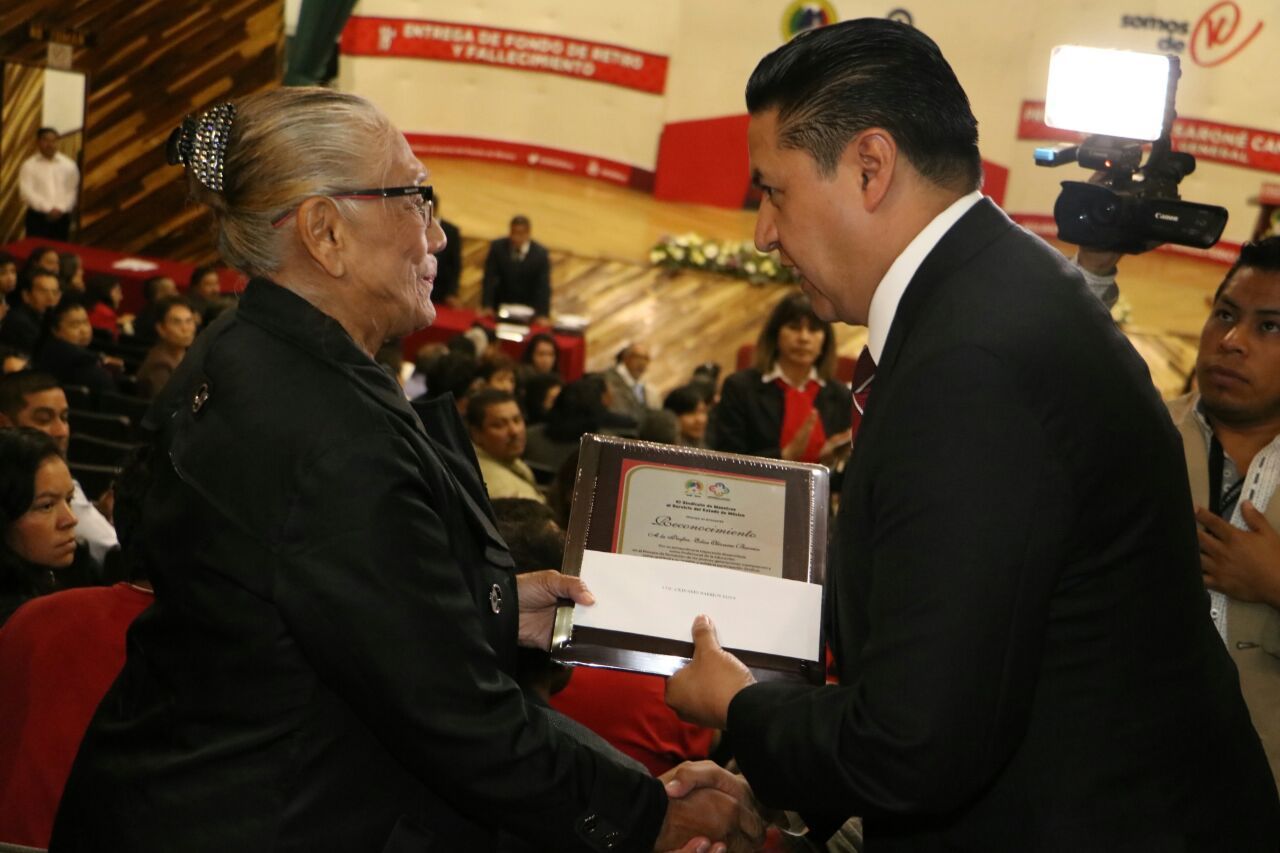 El Sindicato de Maestros al Servicio del Estado de México (SMSEM) despide con honores, respeto y gran estima a los docentes que deciden jubilarse, a través del otorgamiento puntual del Fondo de Retiro y Fallecimiento (FonRetyF), afirmó el Secretario General, Abraham Saroné Campos, al encabezar la 18ª ceremonia de entrega de este programa, en la que fueron beneficiados 276 docentes y sus familias.En el evento destacó la presencia de Ignacio Torres Olascoaga, precursor del Reconocimiento Jurídico del SMSEM en 1966, quien decidió poner fin a su labor profesional tras 65 años ininterrumpidos al servicio de la tarea educativa y sindical.