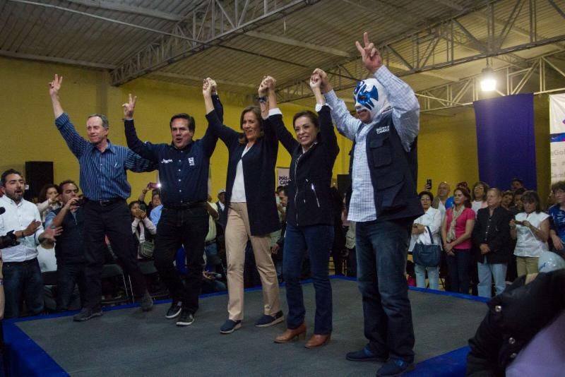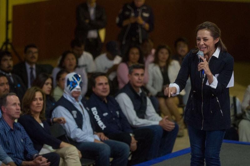 La acompañaron Margarita Zavala, el luchador Atlantis, los diputados locales Raymundo Garza y Víctor Gálvez, así como el legislador federal Luis Marrón y el Presidente del PAN-Edomex, Víctor Hugo Sondón Saavedra.