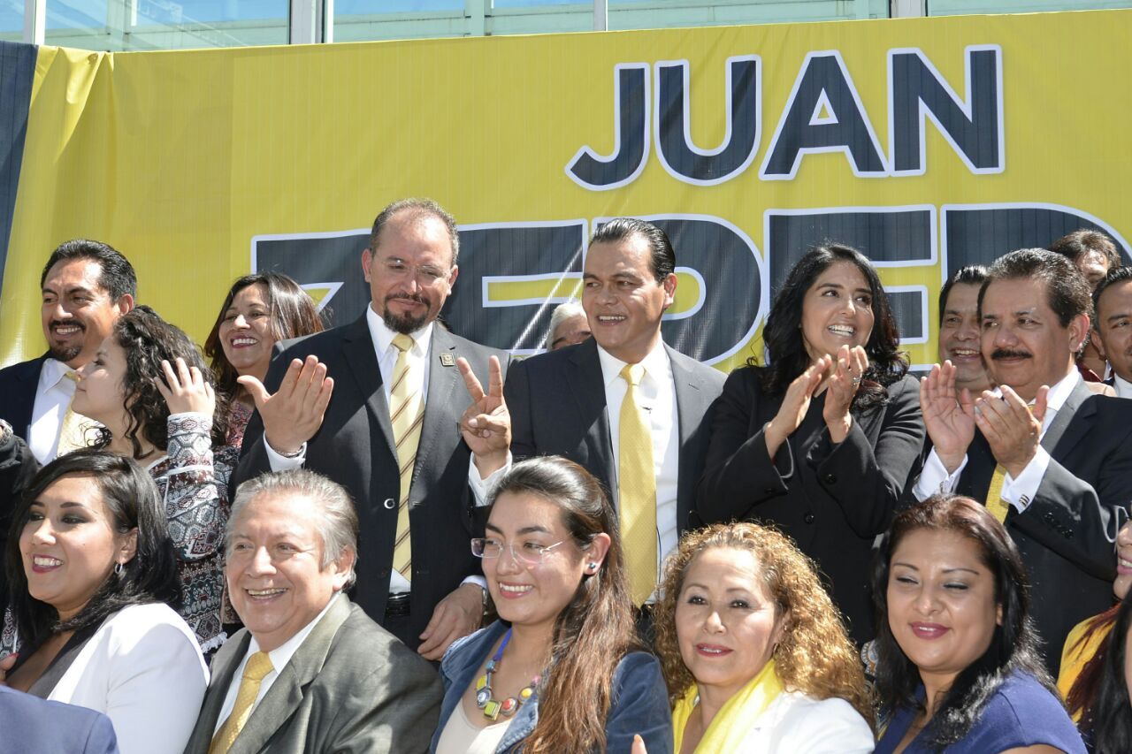 Esta tarde el precandidato del PRD, Juan Zepeda acudió ante el Consejo General del Instituto Electoral del Estado de México – IEEM- a presentar su solicitud de registro como candidato del Sol Azteca a la gubernatura del estado, ahí señaló que va a morirse en la raya para regresar la esperanza y la felicidad a los mexiquenses.