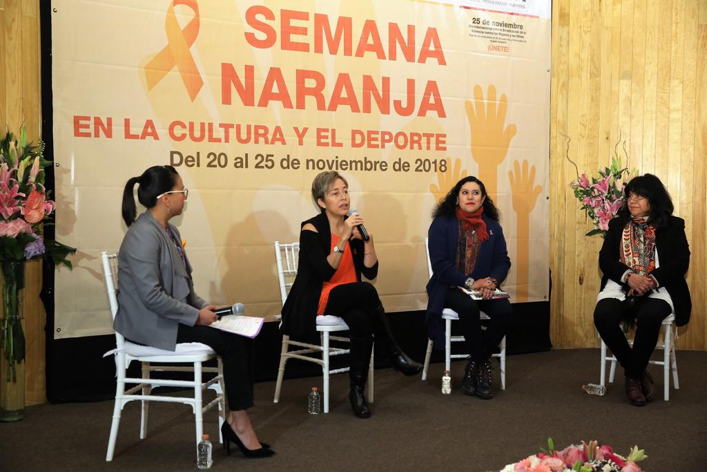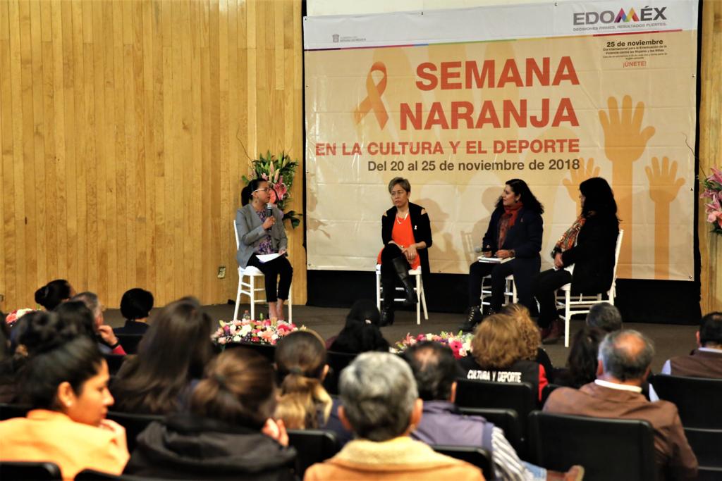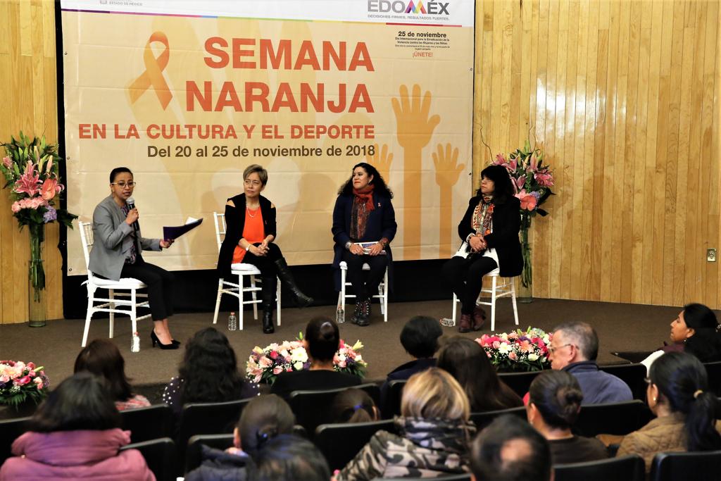 Toluca, Estado de México, 22 de noviembre de 2018. En el marco de la Semana Naranja la Secretaría de Cultura llevó a cabo la mesa de diálogo “Mujeres en la cultura”, en la que servidoras públicas compartieron las experiencias y los retos que, como mujeres, han tenido que enfrentar para desarrollarse profesionalmente.