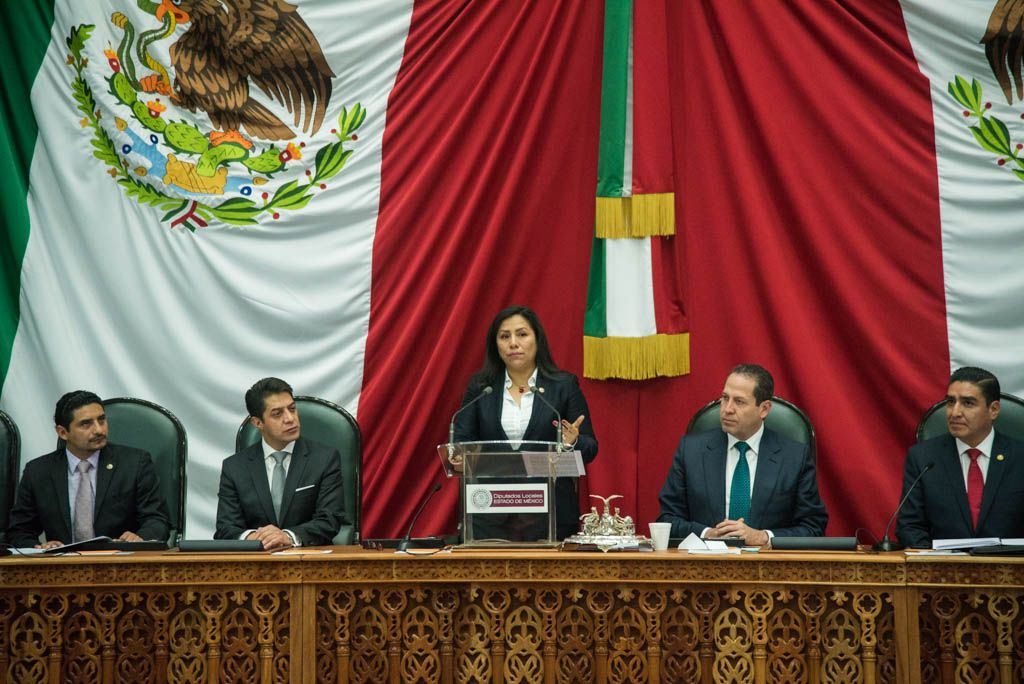 Ante el presidente del Tribunal Superior de Justicia del Estado de México, Sergio Javier Medina Peñaloza; el secretario General de Gobierno, José Manzur Quiroga; el rector de la Universidad Autónoma del Estado de México, Jorge Olvera García, miembros del gabinete estatal y atletas que participaron en los Juegos Olímpicos Río 2016, la legisladora convocó a valorar la percepción social que existe de los legisladores, por lo que este periodo implica una ventana de oportunidad ante la demanda democrática, y ofreció el mayor de sus esfuerzos para que la armonía, la inclusión y el respeto sean los ejes del trabajo parlamentario.