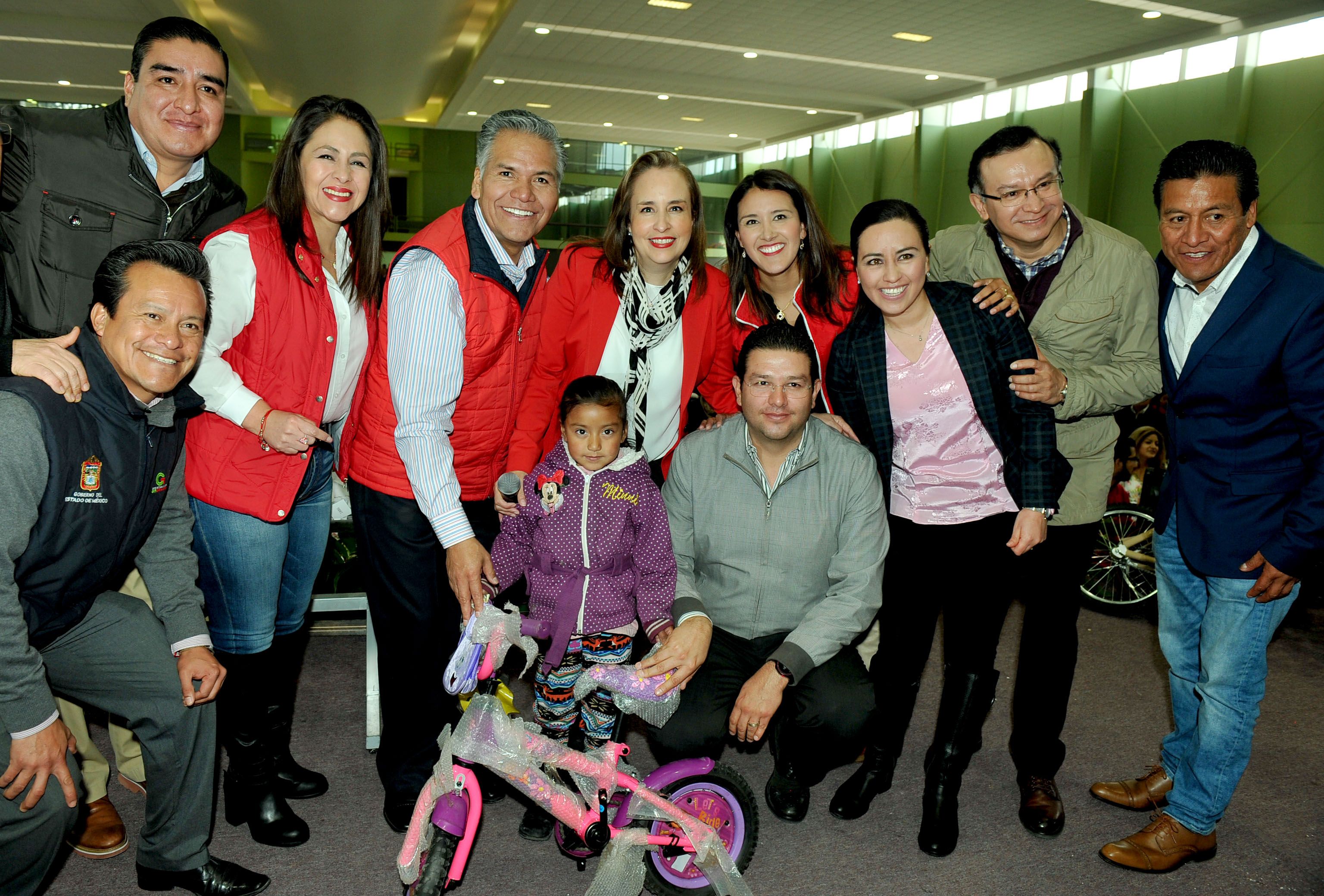 AL entregar de mil 600 juguetes Carolina Alanis Moreno, directora general del DIF mexiquense y presidenta del Gabinete Regional XVII acompañada de Fernando Zamora Morales, Manuel Castrejón Morales y Adolfo Jonathan Solís, presidentes municipales de Toluca, Zinacantepec y Almoloya de Juárez, respectivamente, resaltó que los niños son el futuro de un país y de nuestro estado por ello se duplicaran esfuerzos para fortalecerlos en materia de salud, alimentación, recreación y educación, en esta última destacó la administración del gobernador Eruviel Ávila Villegas como referente nacional.