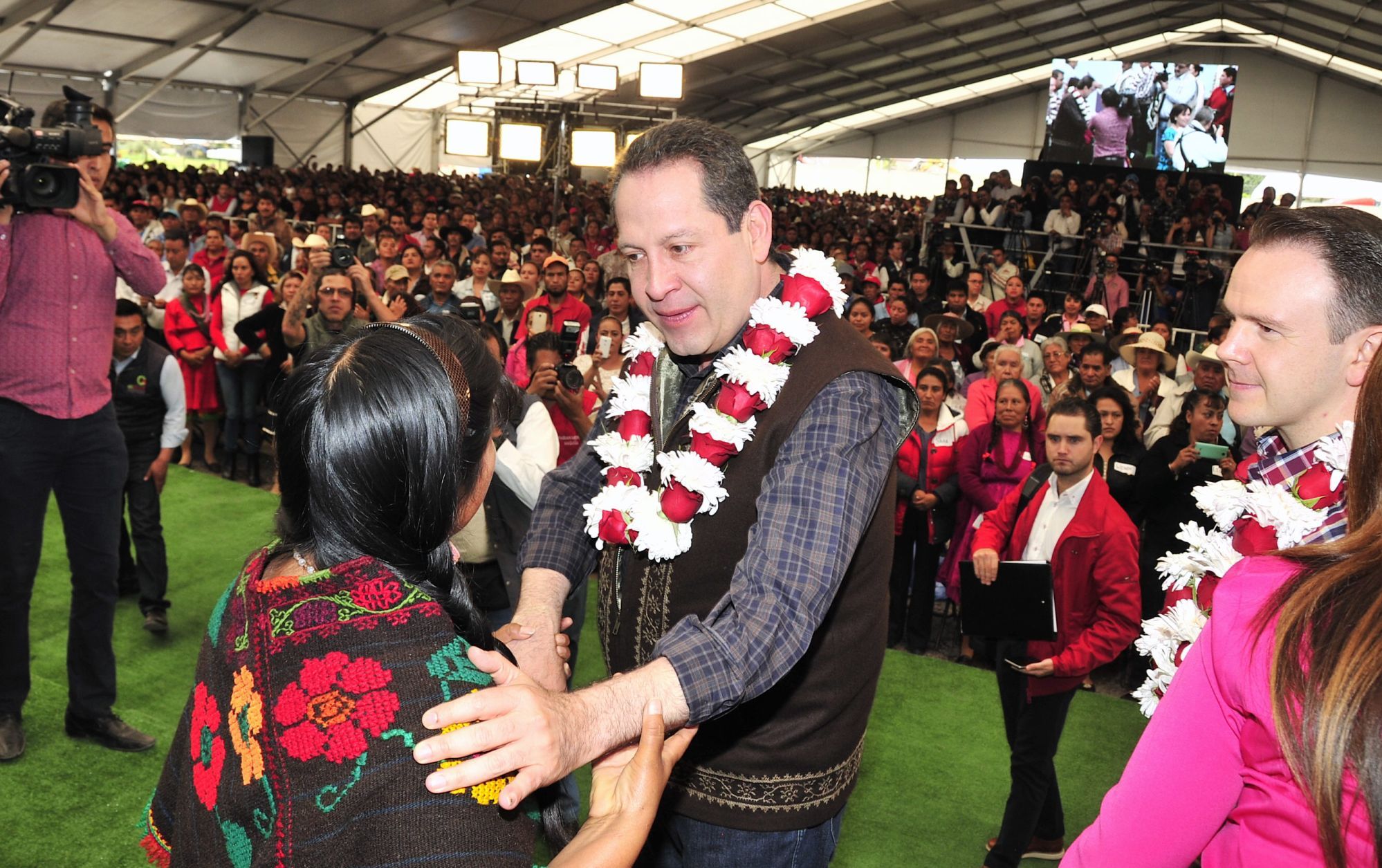 Ante más de 5 mil habitantes de los municipios de Acambay, Aculco, Atlacomulco, El Oro, San Felipe del Progreso, San José del Rincón, Temascalcingo, Timilpan, Chapa de Mota, Jilotepec, Jocotitlán, Morelos, Polotitlán, Zoyaniquilpan e Ixtlahuaca, Eruviel Ávila expresó que, en su calidad de coordinador de la Comisión de Asuntos Internacionales de la Conferencia Nacional de Gobernadores (Conago,) convocará a sus homólogos del país para fortalecer, a través de sus oficinas o casas de representación, la relación con los consulados establecidos en la Unión Americana, a efecto de defender los derechos de los migrantes y hacerles saber que no están solos.