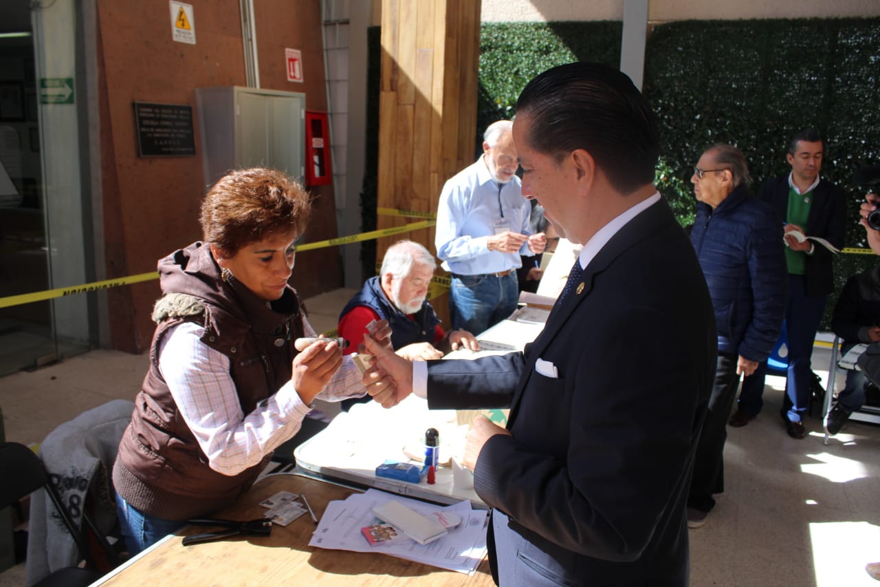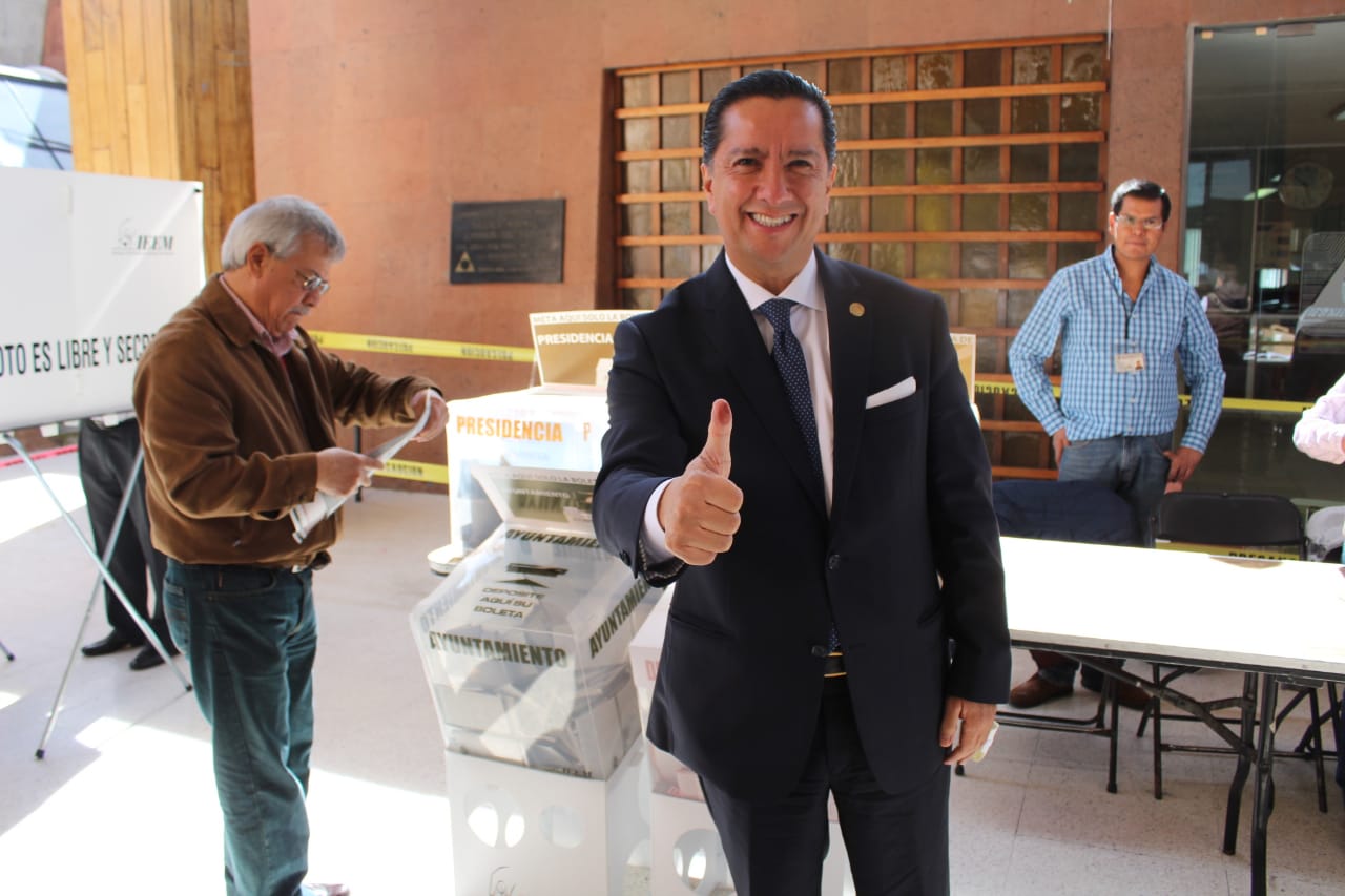 Tras asistir a la apertura de la Sesión Permanente del Instituto Electoral del Estado de México, a las 10:30 horas acudió como un ciudadano comprometido a ejercer su voto en la casilla 5238 contigua, ubicada en la Escuela Normal Superior del Estado de México.