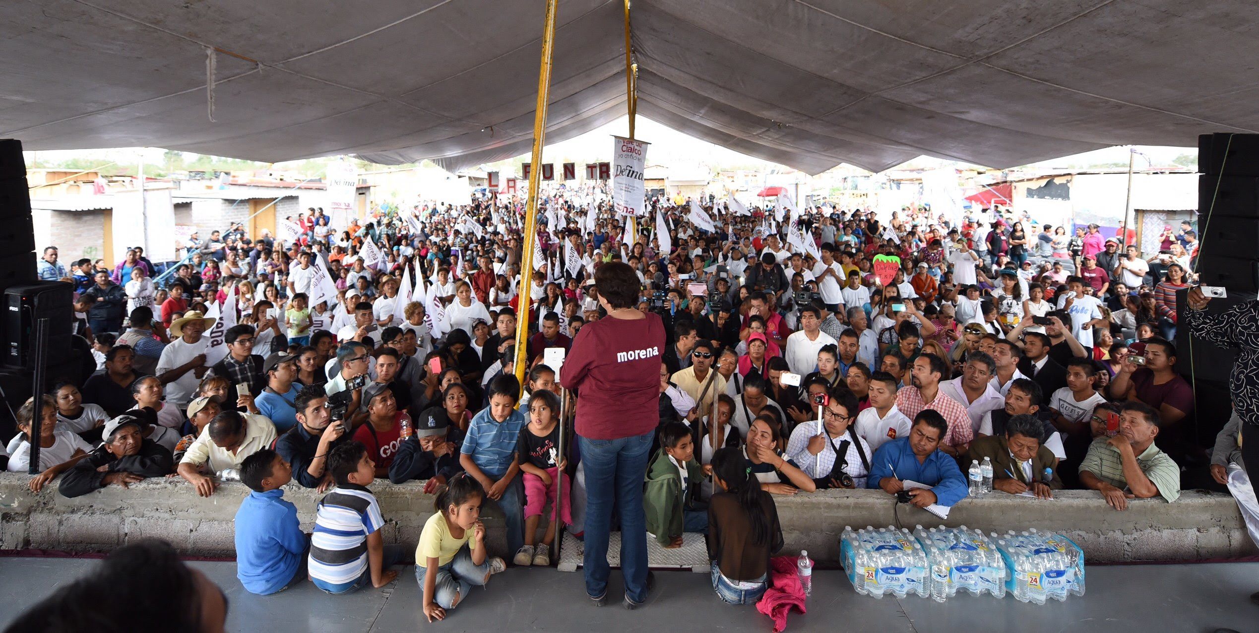 En su visita al asentamiento irregular La Punta, en Valle de Chalco, la maestra Delfina Gómez Álvarez pidió a la ciudadanía no dejar de luchar para que se respete el triunfo de MORENA.“El PRI no sabe como acallar el fraude, ellos siguen insistiendo que Del Mazo ganó cuando todavía no hay un resultado y hay procedimientos legales en proceso. Ellos siguen mintiendo, pero jamás van a poder acallar a la gente”.