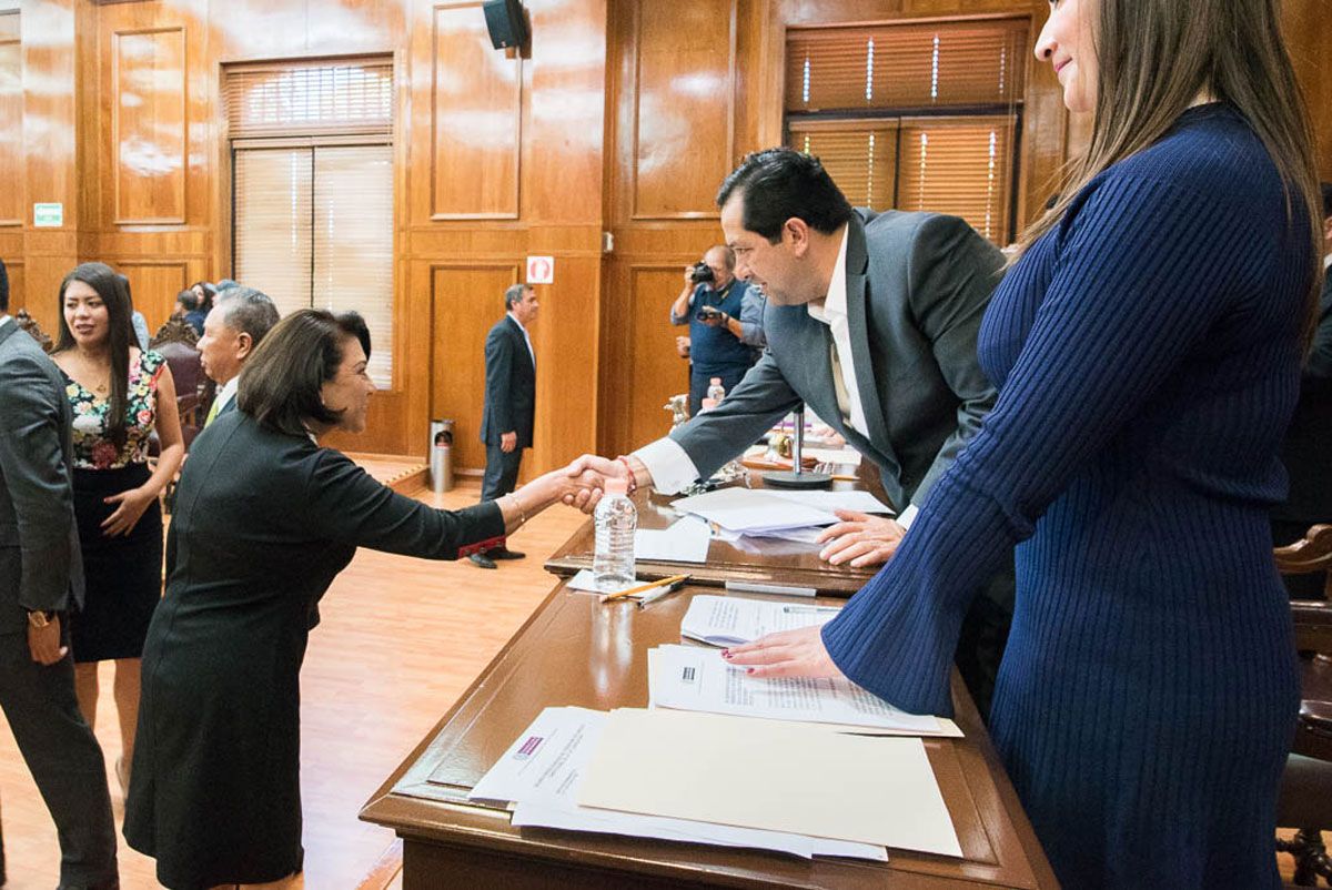 La Diputación Permanente tomó protesta como diputadas a las ciudadanas Evangelina Pérez Zaragoza, Diana Karina Juárez Servín y María Guadalupe Ordaz García, quienes sustituyen a las legisladoras con licencia temporal, Patricia Durán Reveles, Perla Guadalupe Monroy Miranda y Mirian Sánchez Monsalvo.